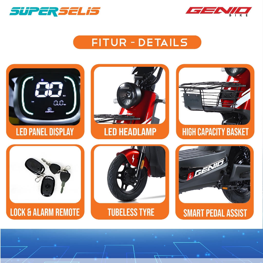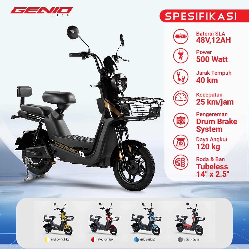 Sepeda Listrik GENIO EASTON X2 48V 12AH 48V/12AH Selis Garansi Resmi