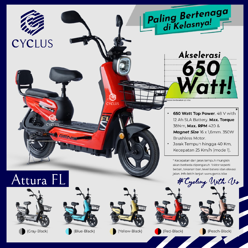 Sepeda Listrik Genio Attura / Attura FL Murah Canggih LED