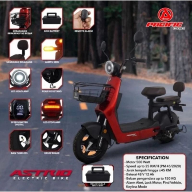 Sepeda Listrik Pasific Exotic Astrio As Trio 500 W Watt Aki 48 V 12 AH