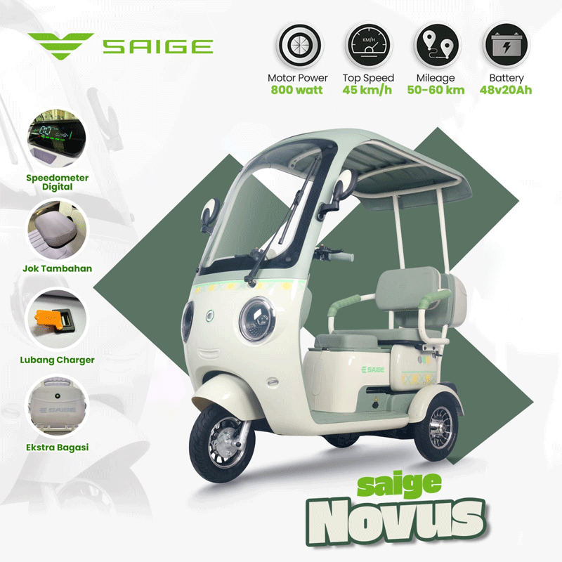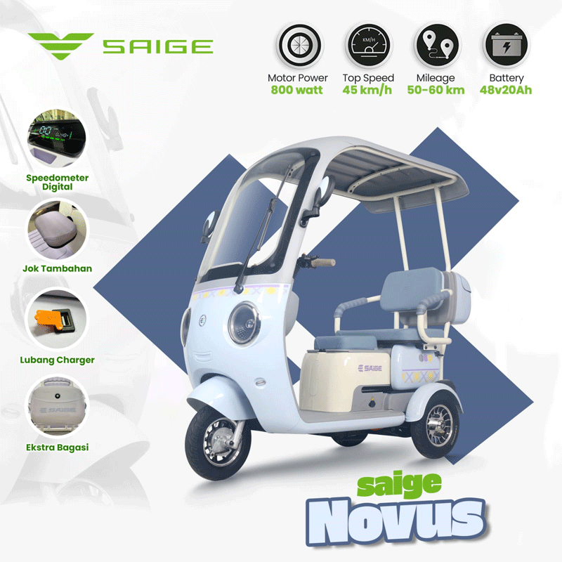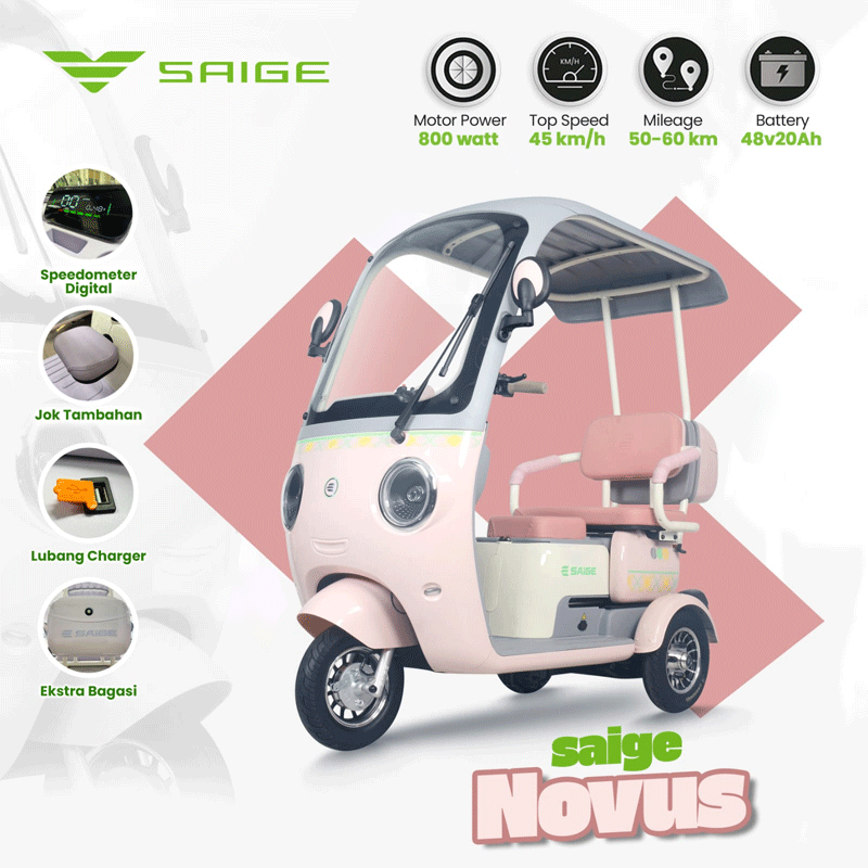 Sepeda Listrik Roda 3 SaiGe NOVUS Terbaru 2026 Bajai Listrik Lucu 800W 48V Dewasa Anti Air Garansi