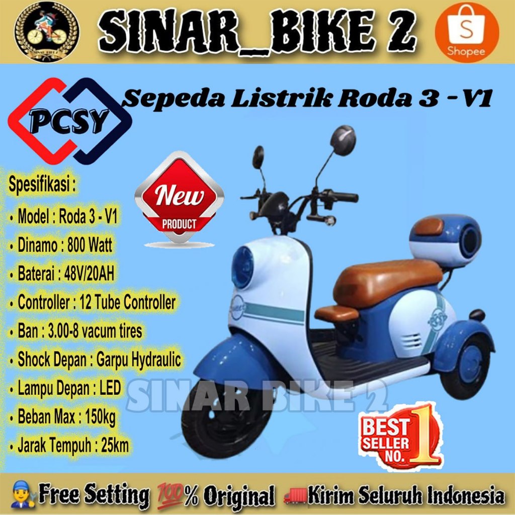 Sepeda Listrik Roda 3 V1 PCSY Tricycle E Bike 800 Watt