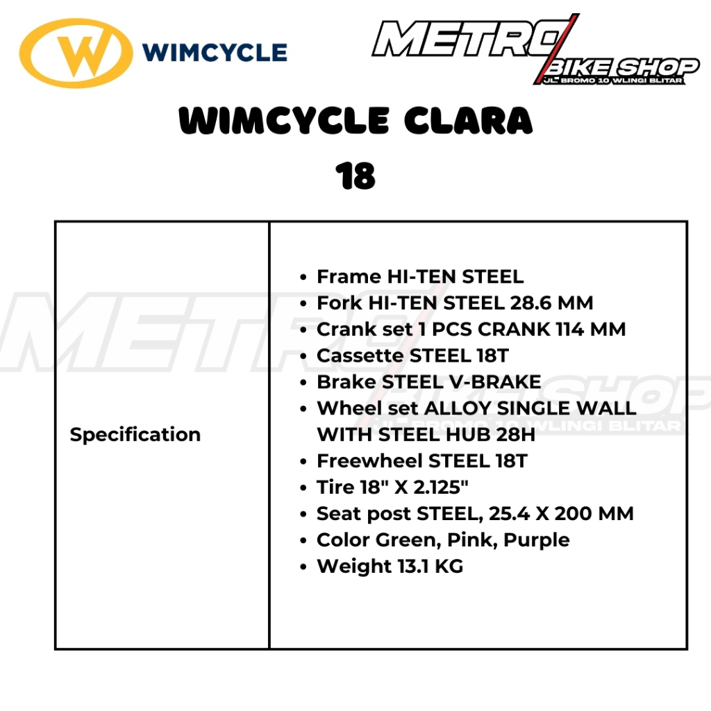 Sepeda anak Wimcycle Clara 18 inch Sepeda anak perempuan Sepeda Wimcycle Kids Bike