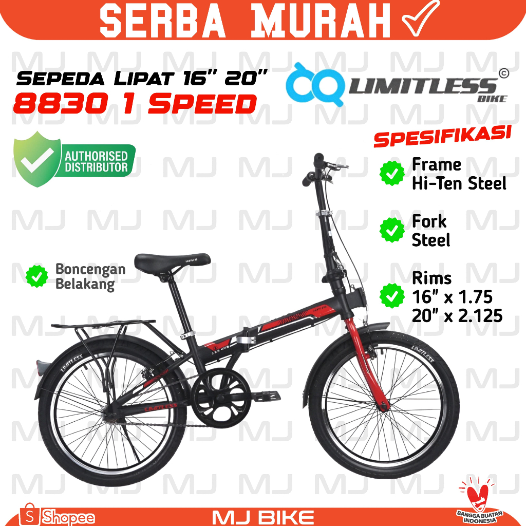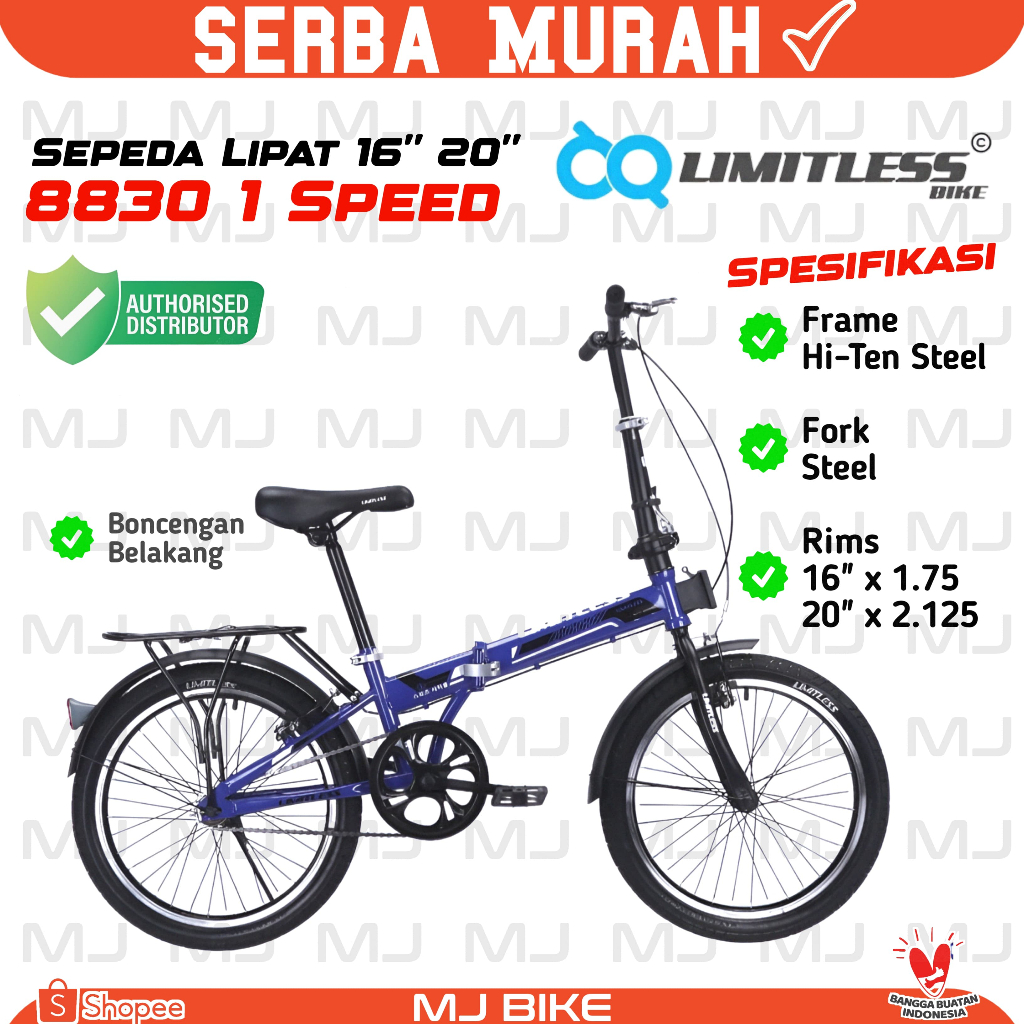 Sepeda lipat anak LIMITLESS 005 / 8830/ 16 & 20 inch folding bike 7 speed