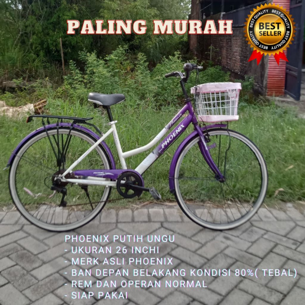 Sepeda wanita keranjang mini cewek perempuan dewasa ukuran 26 bekas siap speda phoenix