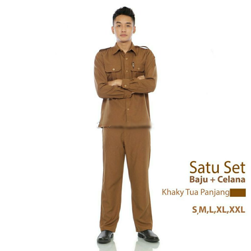 Seragam ASN pria READY baju guru dinas khaki tua lengan panjang BCP94