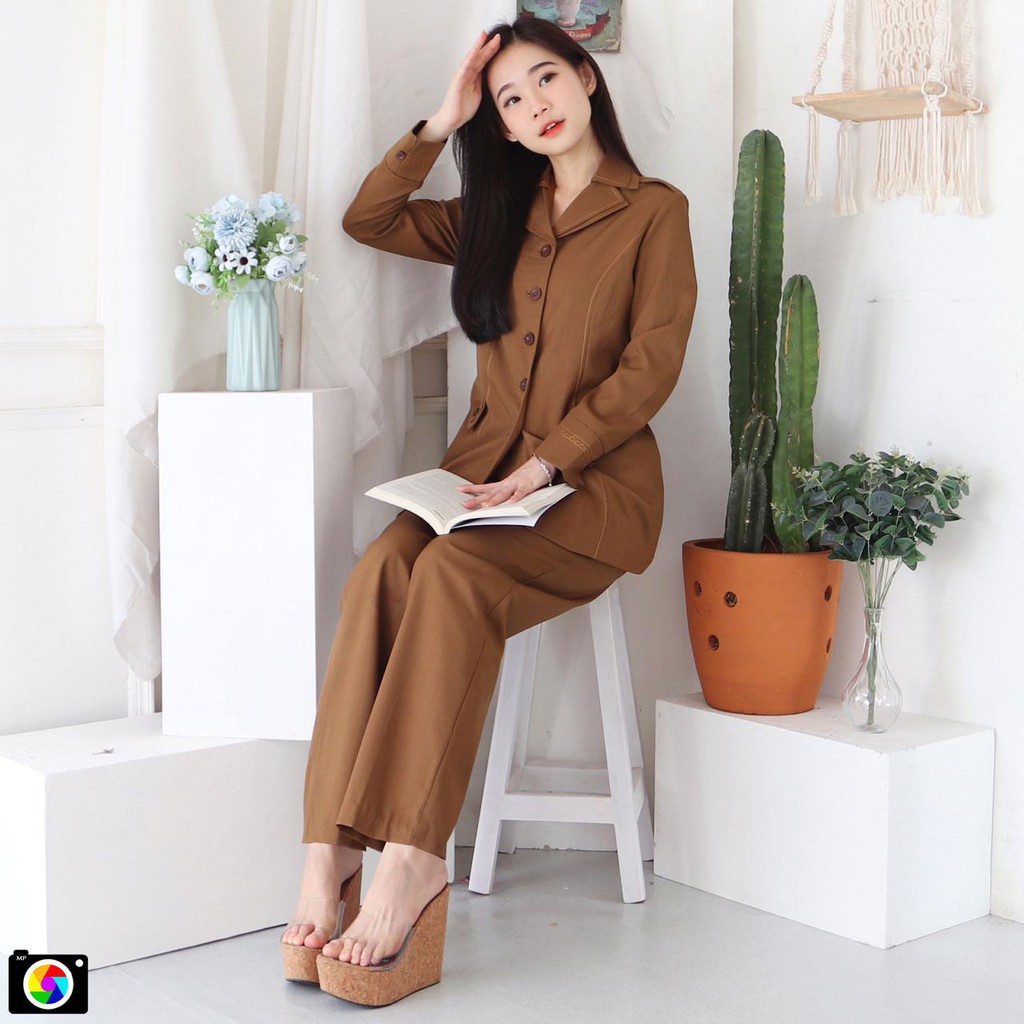 Seragam Dinas Wanita PNS warna khaki Setelan Celana Seragam Pemda Baju kheki Blazer Pemda Aceh Baju Seragam PNS ASN Khaki Baju Pemda Guru Jas Pemda Blazer PDH PDL Warna Coklat Tua