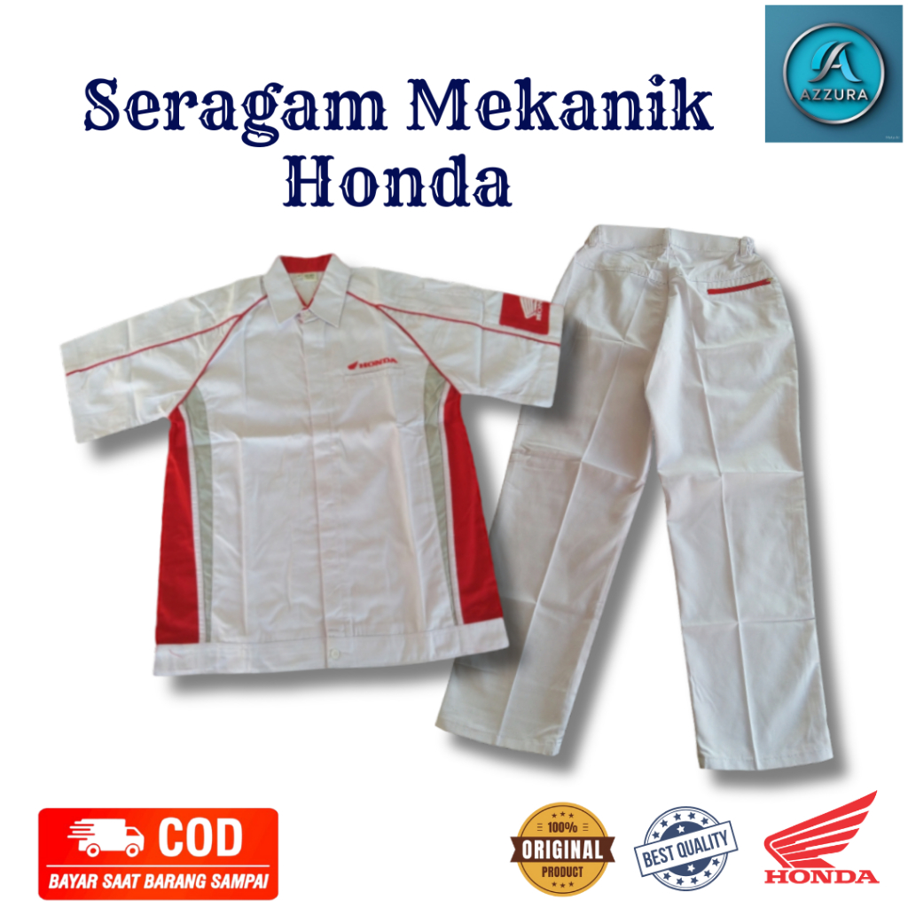 Seragam Mekanik Honda | Baju Celana Mekanik | Baju Mekanik | Celana Mekanik | Seragam Bengkel Putih
