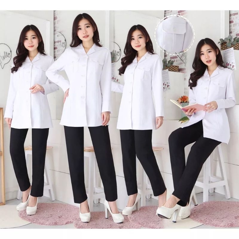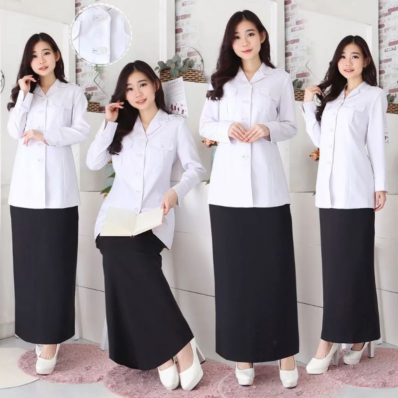 Seragam Putih PNS Wanita , Baju Seragam Putih Kantong Dua , Setelan Seragam Kerja Wanita
