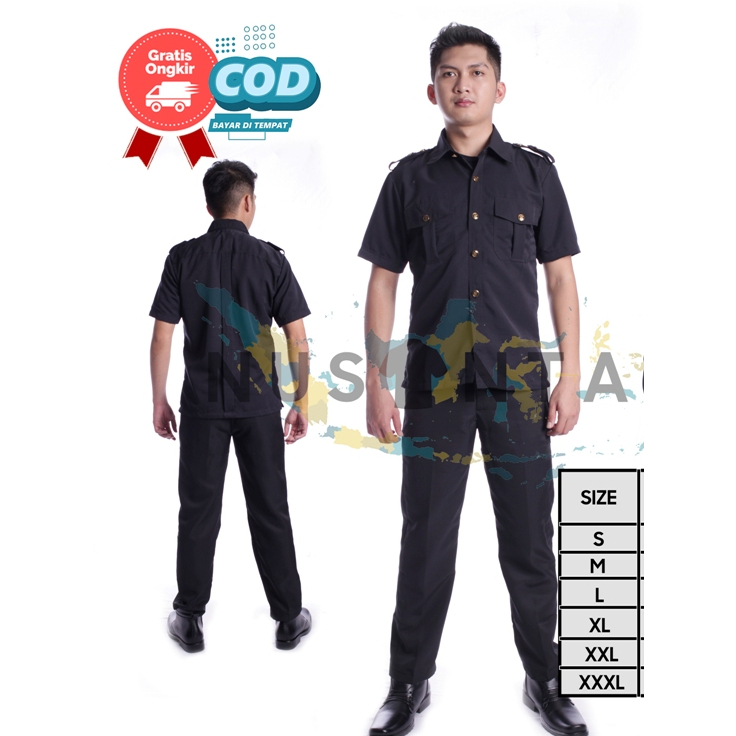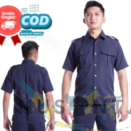 Seragam Safari Satpam Security Driver Terbaru Lengan Pendek Dan Lengan Panjang Warna Hitam Navy