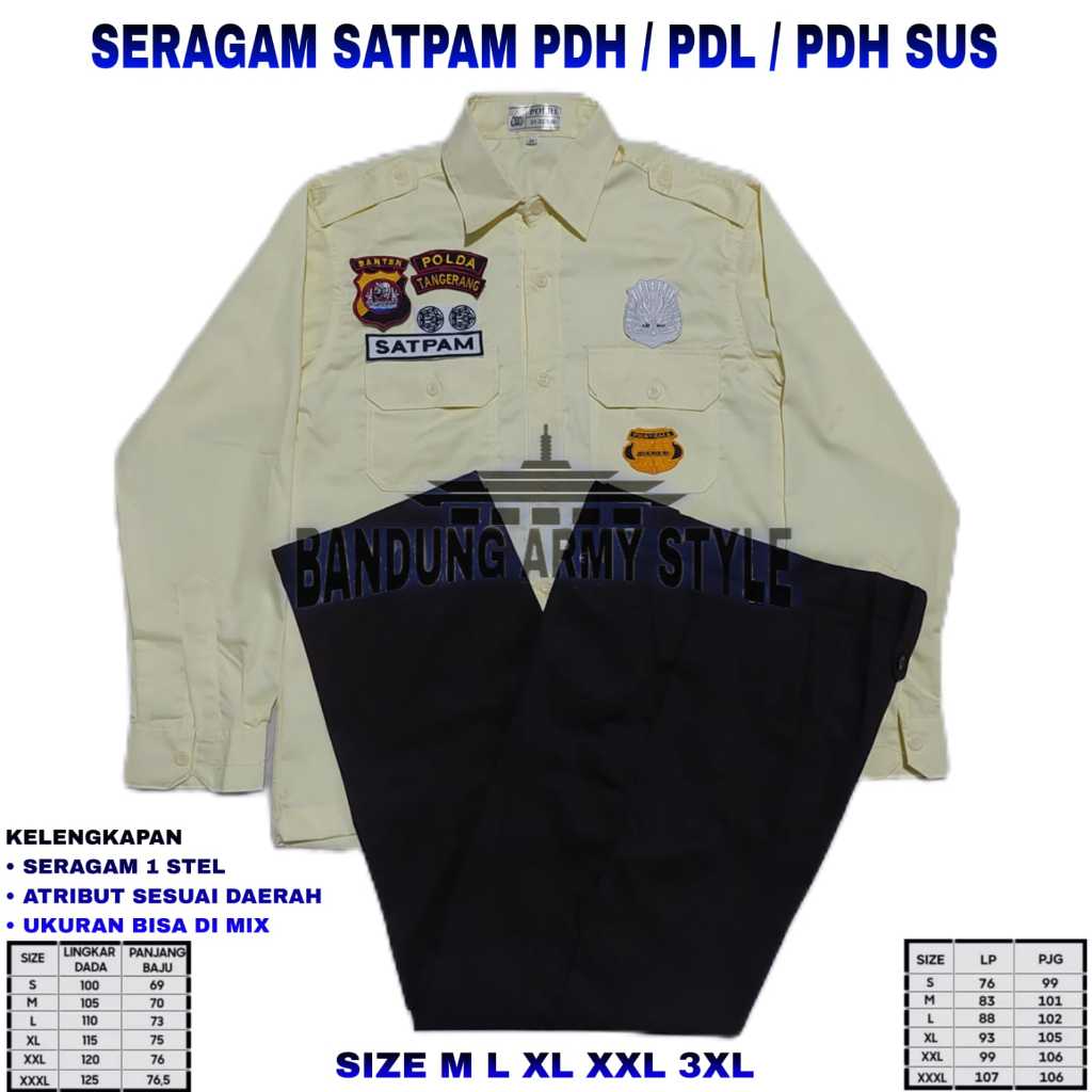 PDH SATPAM / PDL SATPAM / SERAGAM SECURITY KREM / SERAGAM SATPAM / PDH / PDL / SATPAM COKLAT