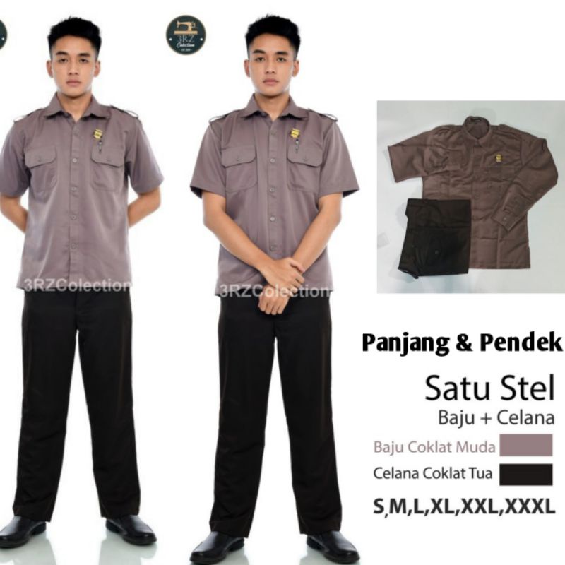 Seragam Satpam Terbaru Setelan Seragam Coklat Satpam Security Baju Coklat Polisi Baju Dinas Polisi Baju Seragam Security/Satpam Lengan Pendek Lengan Panjang