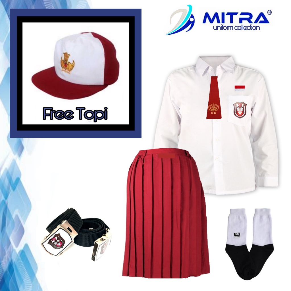 Seragam Sekolah SD Merah Putih Panjang Setelan Baju Anak Perempuan Lengkap Kelas 1-6 SD Free Topi Merah Putih SD
