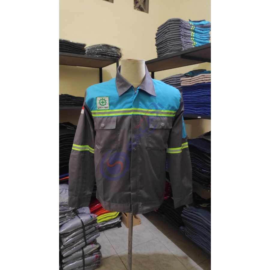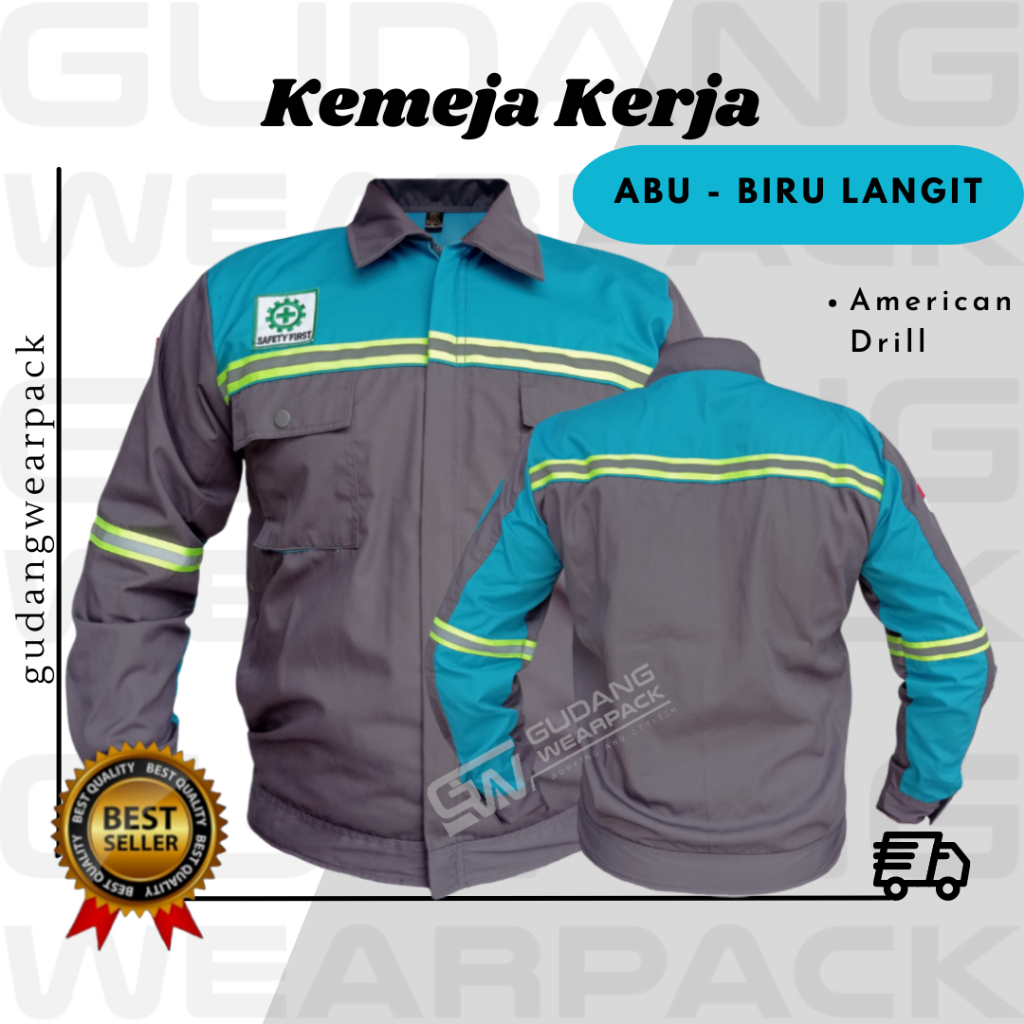 Seragam Proyek / Baju Kerja Lapangan ATASAN Kemeja Lengan Panjang Warna ABU KOMBINASI BIRU LANGIT