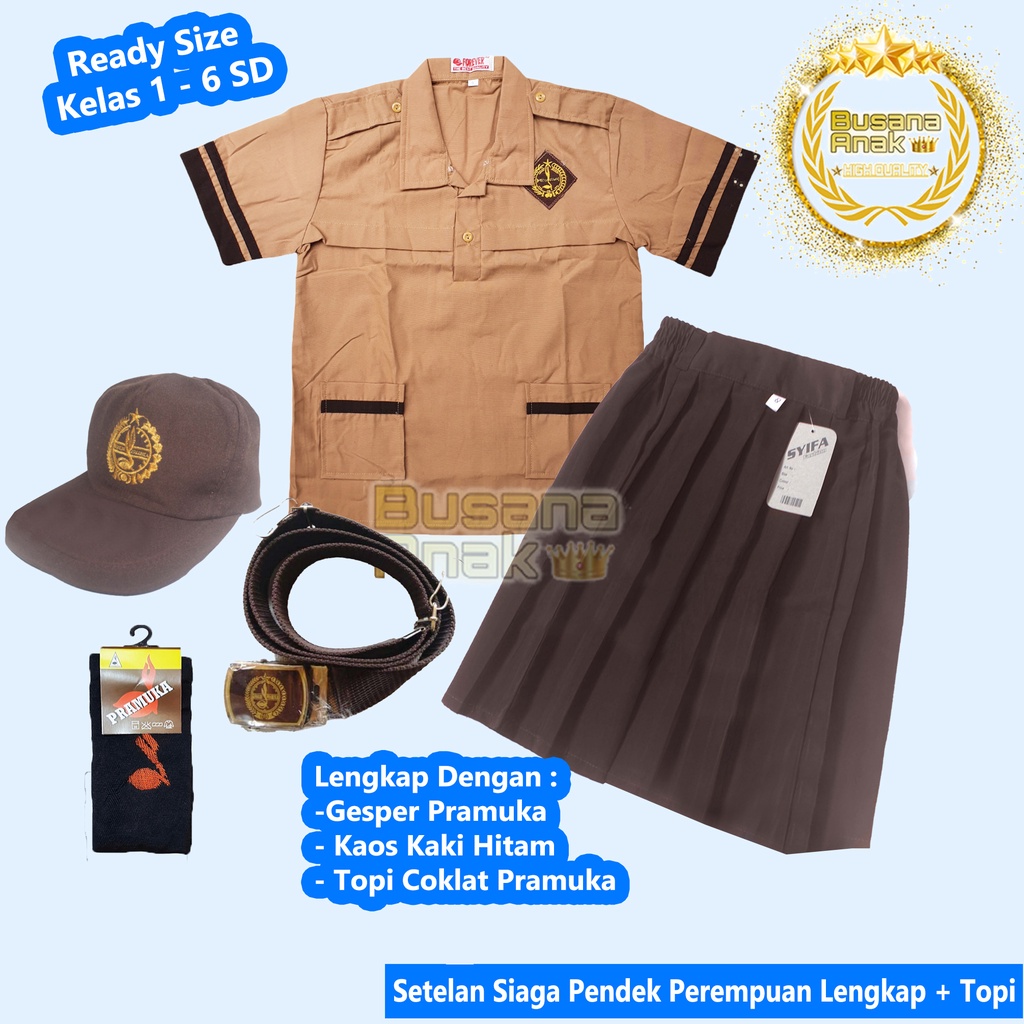 Seragam sekolah sd pramuka Setelan Pramuka SIAGA Pendek anak Perempuan Lengkap + TOPI