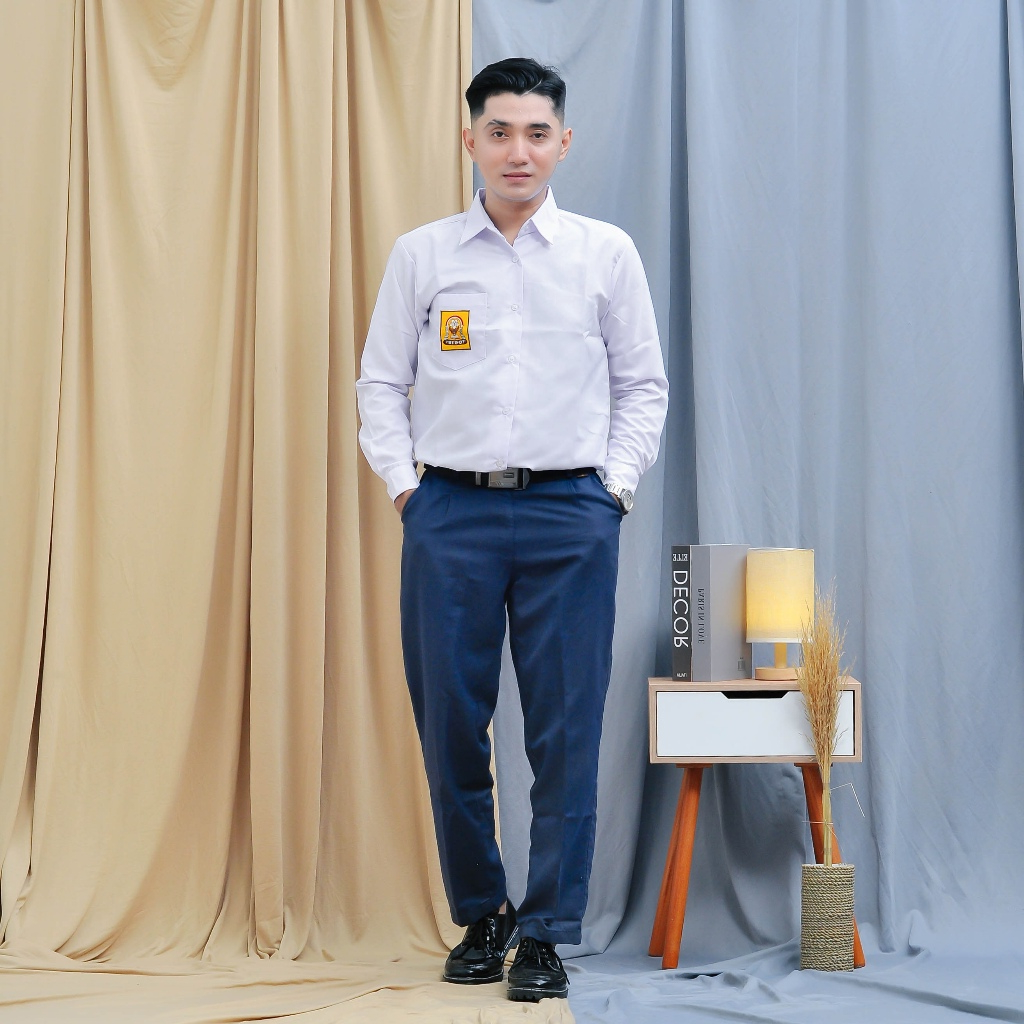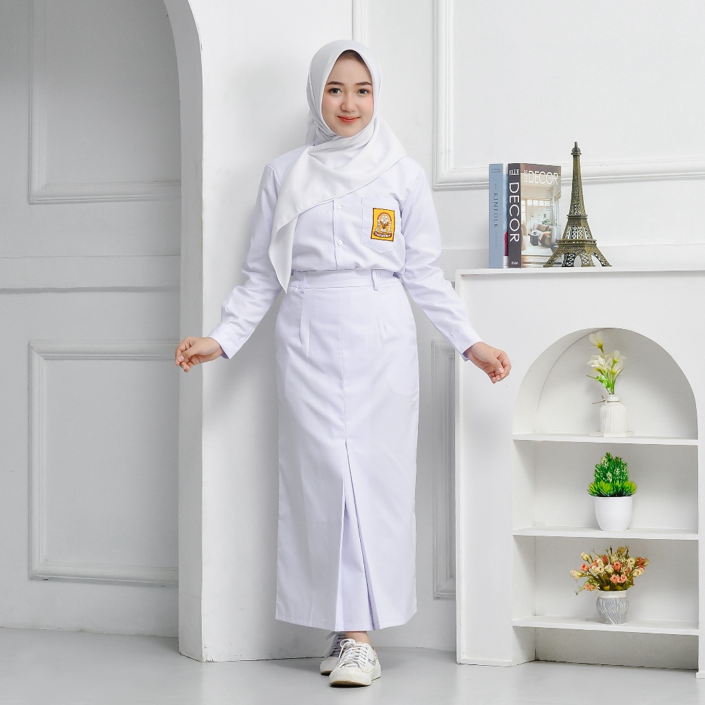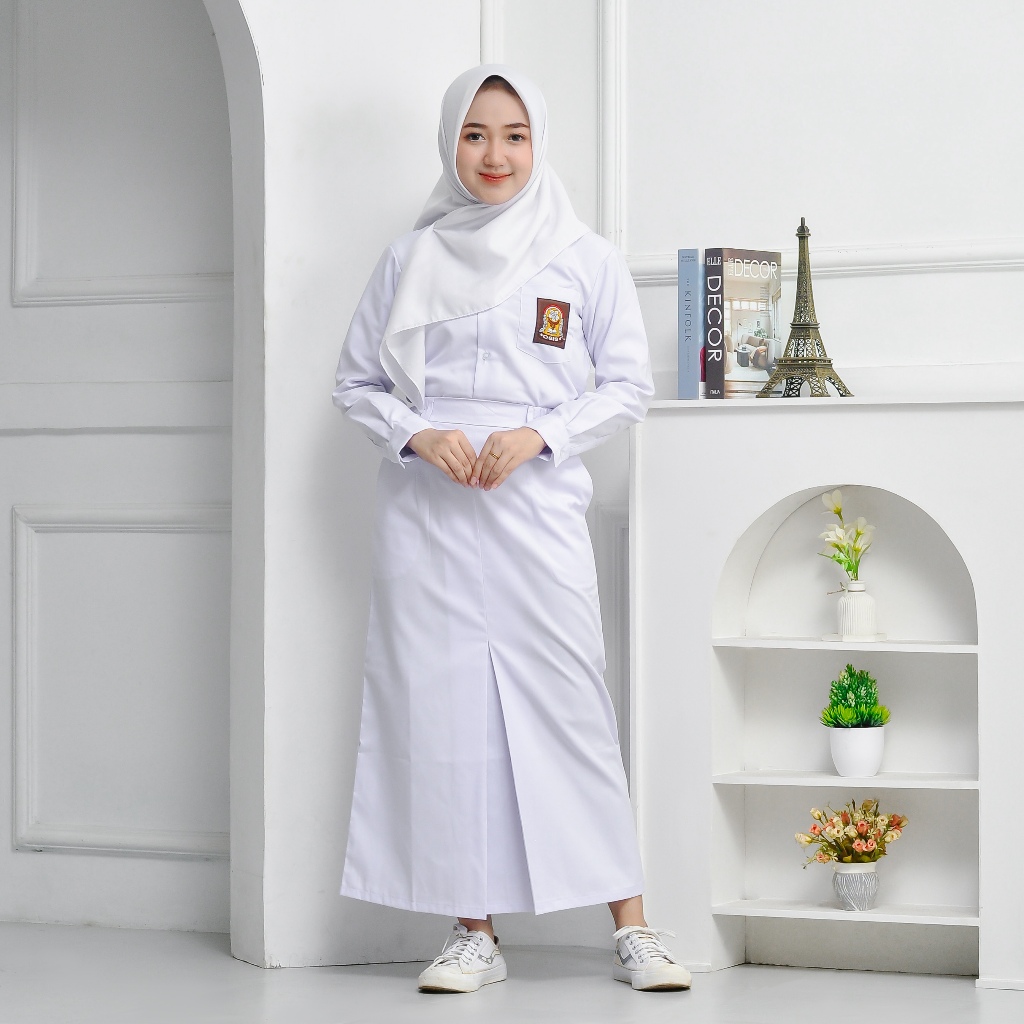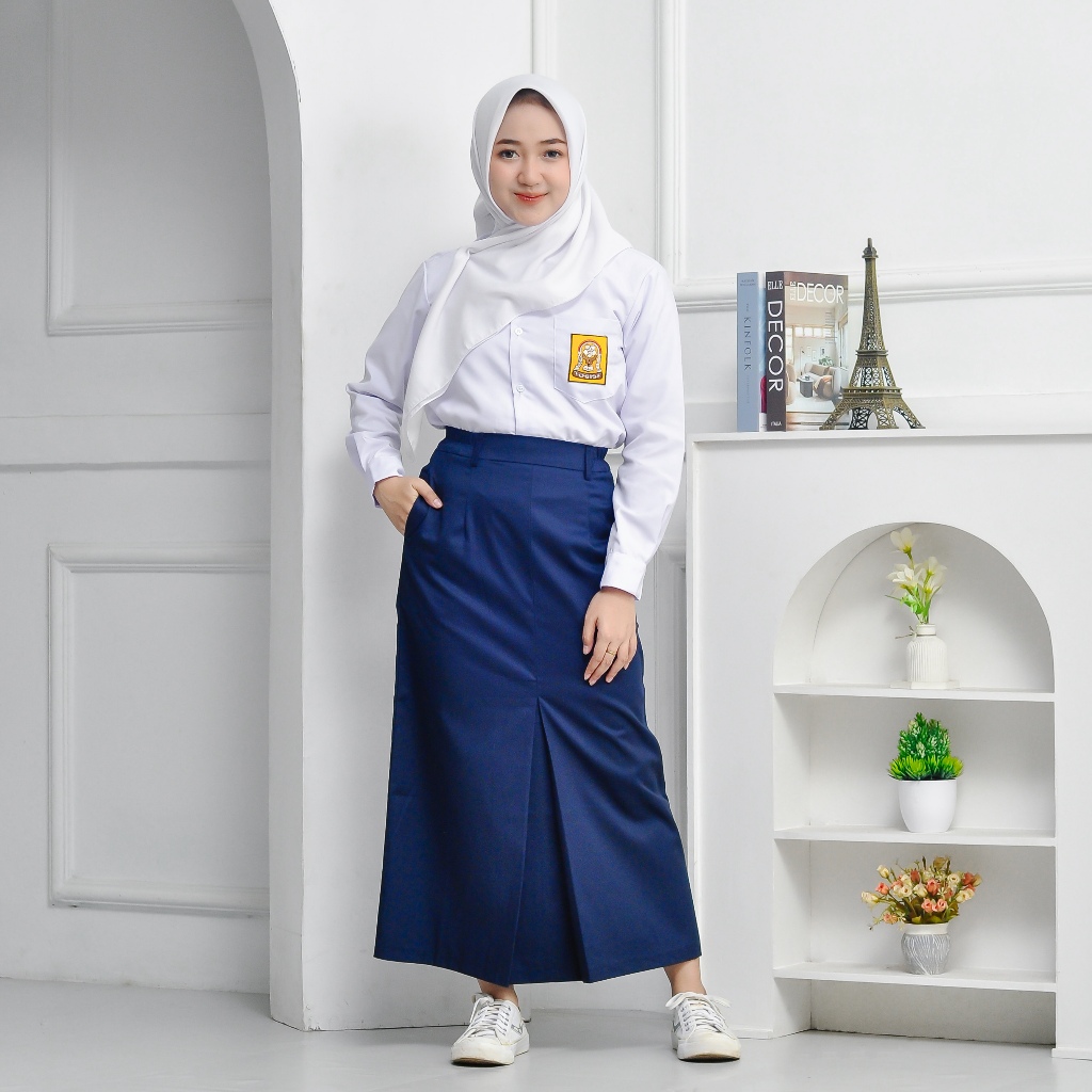 ARFALO - Seragam sekolah smp baju osis lengan panjang dan rok span dongker putih