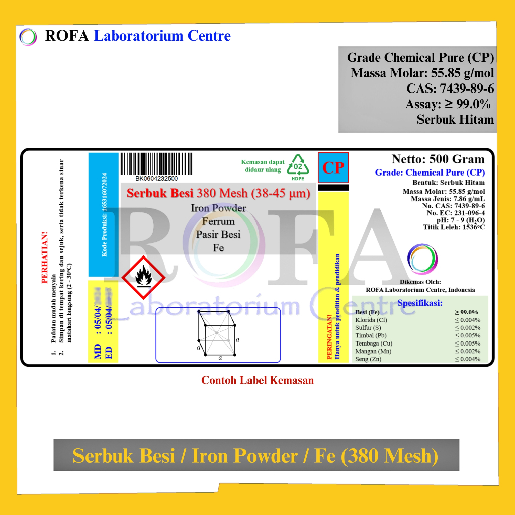 ROFA Serbuk Besi 380 Mesh / Iron Powder / Pasir Besi / Ferrum / Fe CP 500 Gram
