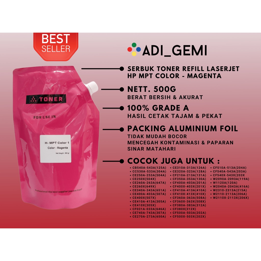Serbuk Toner Refill LaserJet Printer HP MPT Color