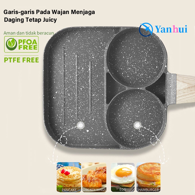 Wajan Panci Penggorengan Telur Pancake 3in1 Non Stick Egg Frying Pan Wajan Teflon Telur Anti Lengket