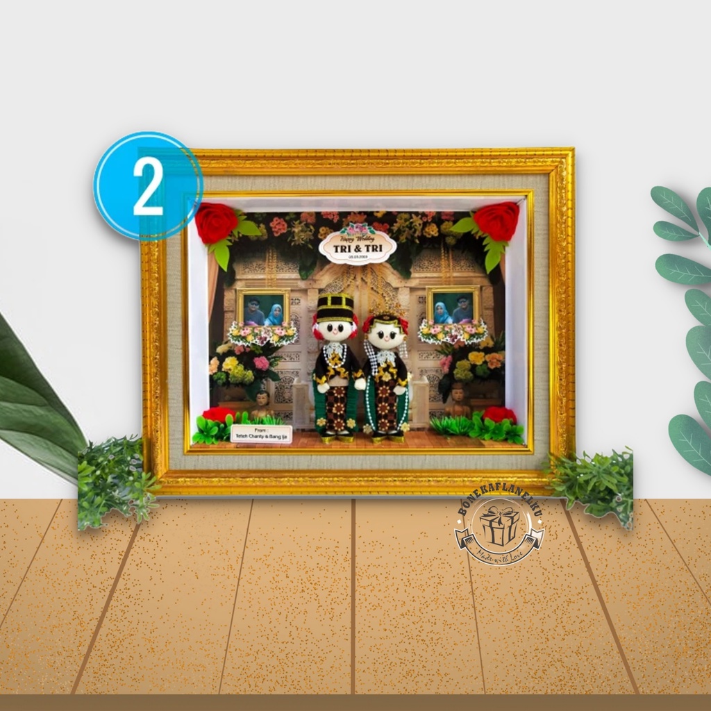 Seserahan Unik Bonekaflanelku Pengantin Adat Jawa Frame 3D 30x40 Cm