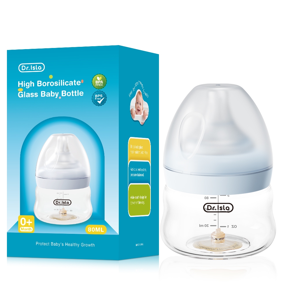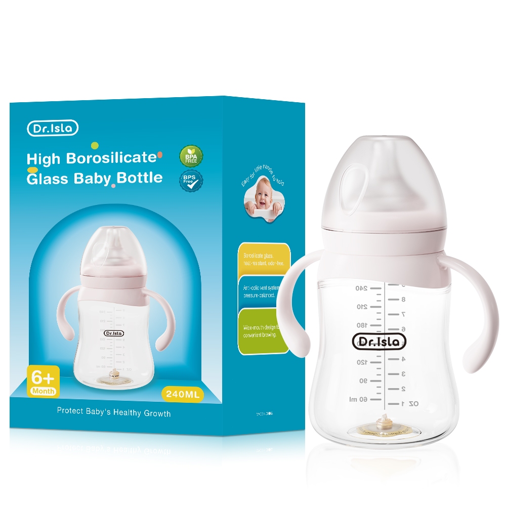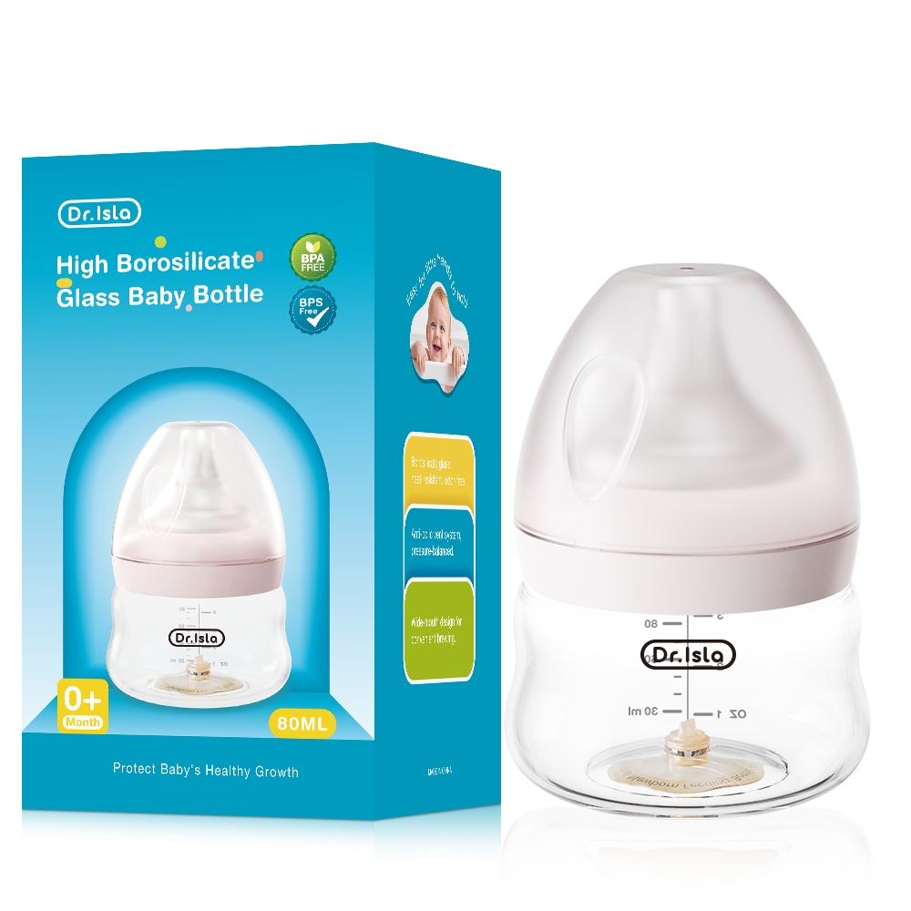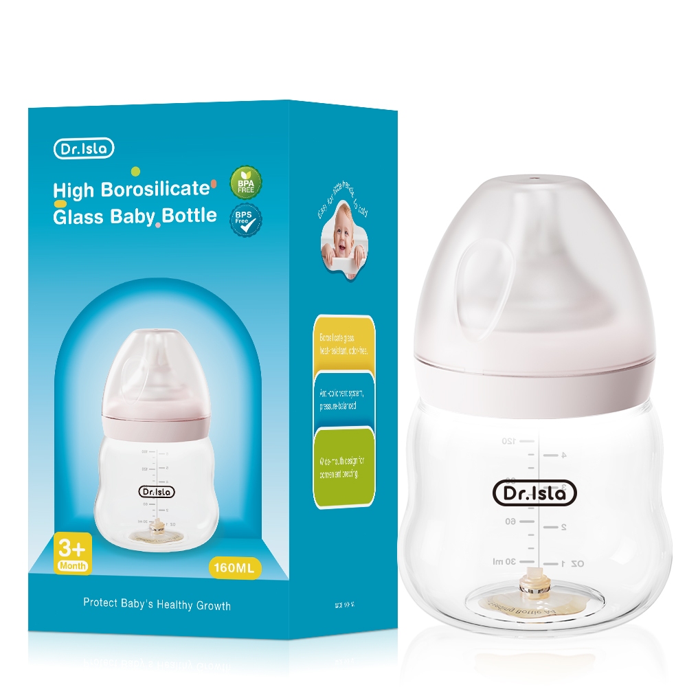 Dr.isla Dot Bayi Botol Susu Kaca 80ml 160ml 240ml Botol Minum Bayi BPA Free Anti Kolik suhu tahan panas-600° dengan garis skala yang terlihat Botol putting silikon cair lentur dan elastisitas tinggi GB61
