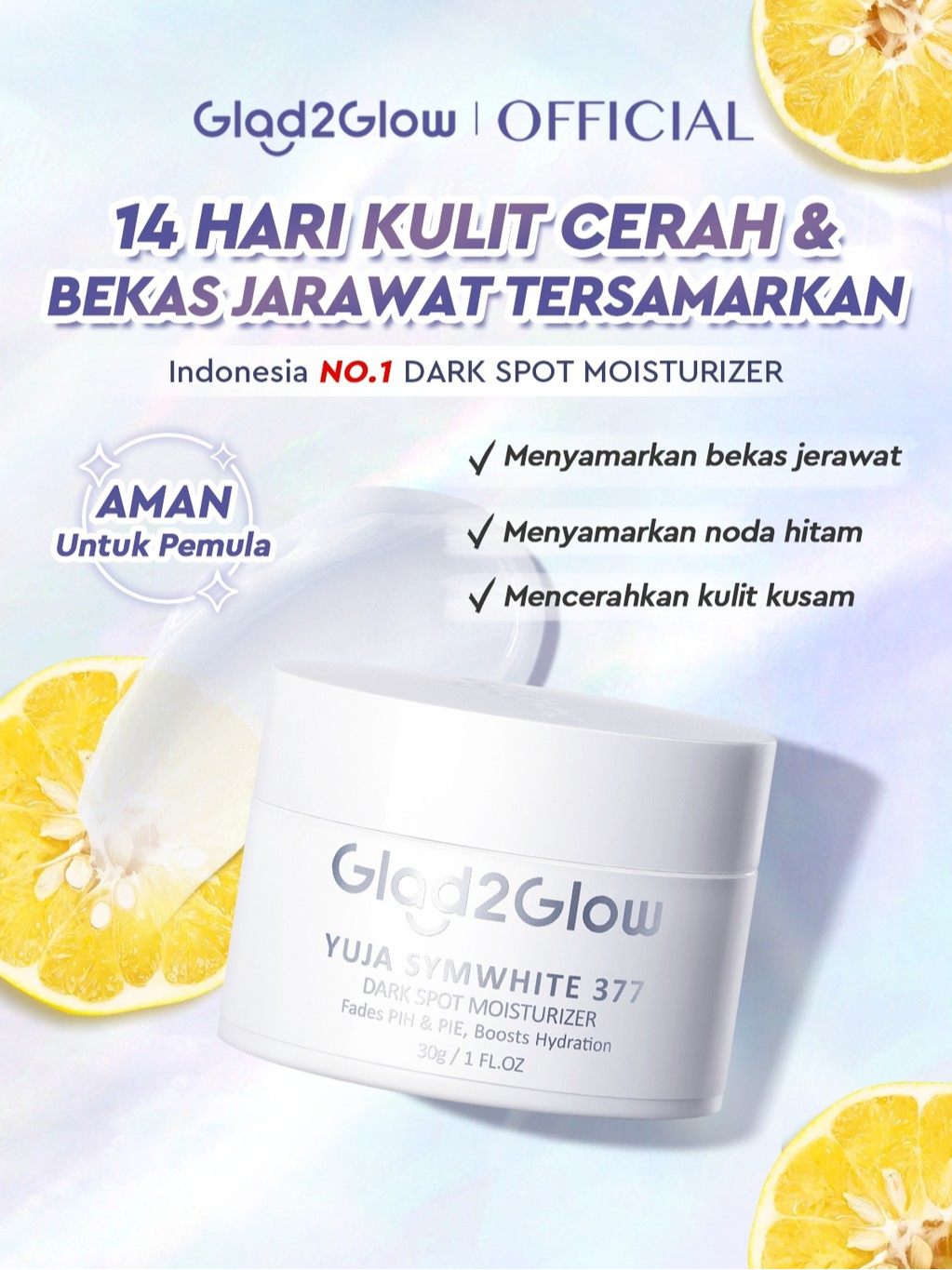 Glad2Glow Yuja Symwhite 377 Dark Spot Moisturizer menghilangkan bekas jerawat brightening night cream day cream Hilangkan Kulit Skincare Pelembab Esensi Wajah Perawatan Wajah Pembersih day cream tone up g2g official store