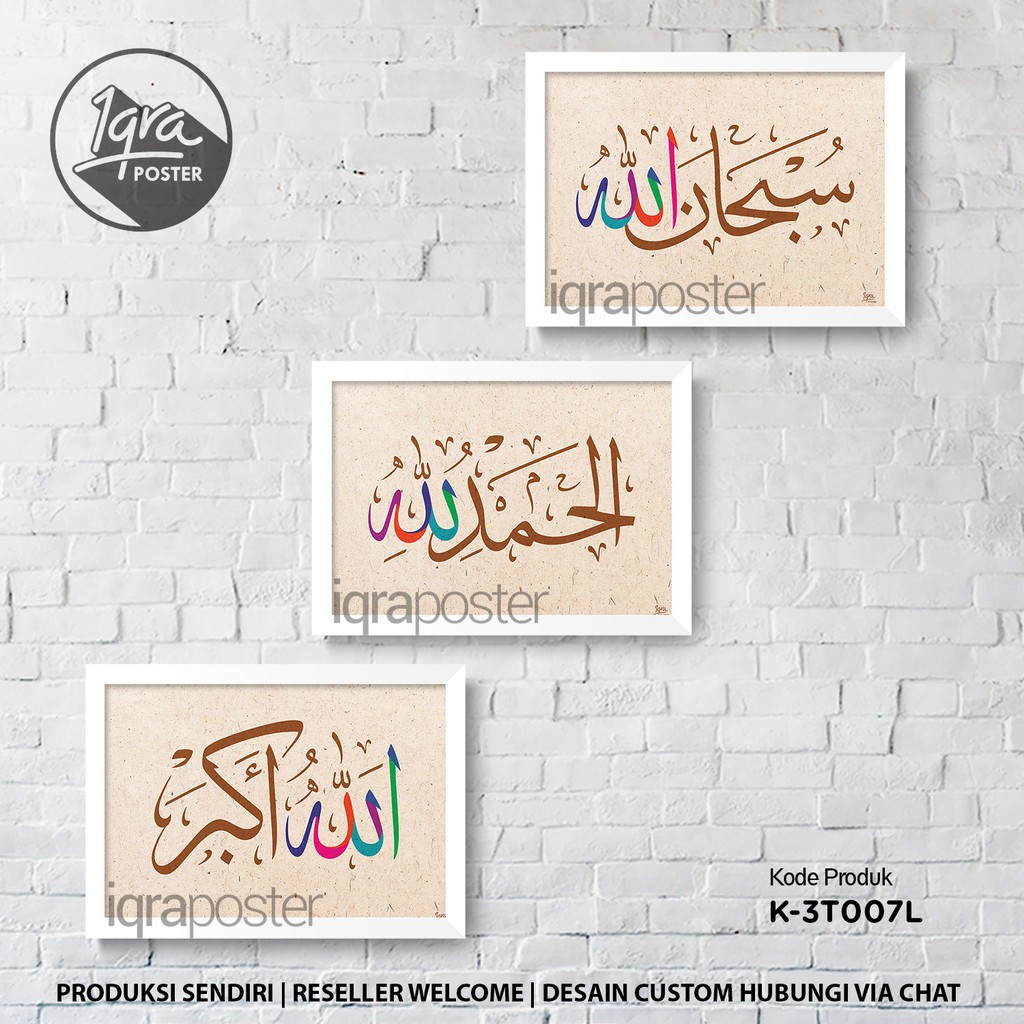 Set 3pcs Kaligrafi Kalimat Thoyyibah 7L dan Pigura Bingkai A4 Pajangan Hiasan Dinding Islami