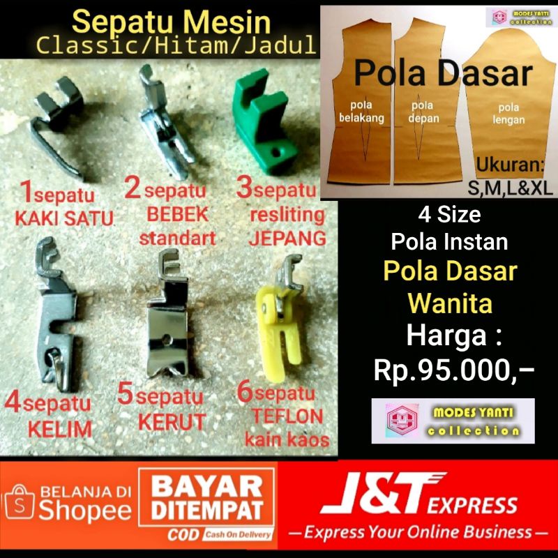 Set 4 ukuran pola instan pola dasar wanita & 6 sepatu mesin jahit hitam/jadul