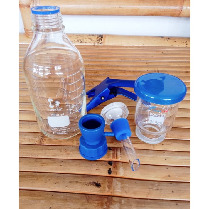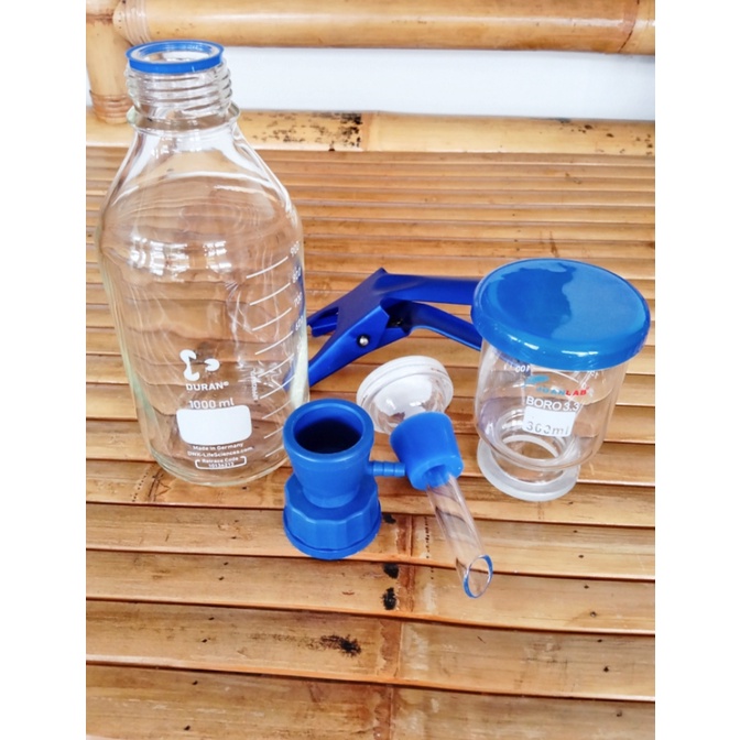 Set 5 Pcs for Laboratory Vacuum Filtration Duran 1L, Adapter GL 45, Filter Head, Clamp Dan Glass Funnel