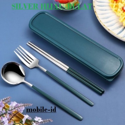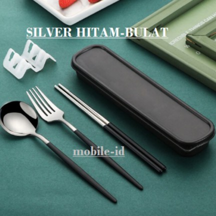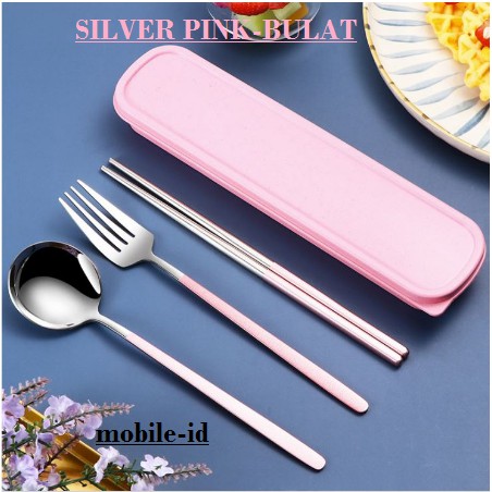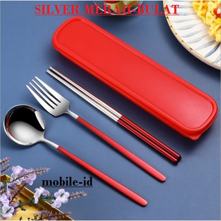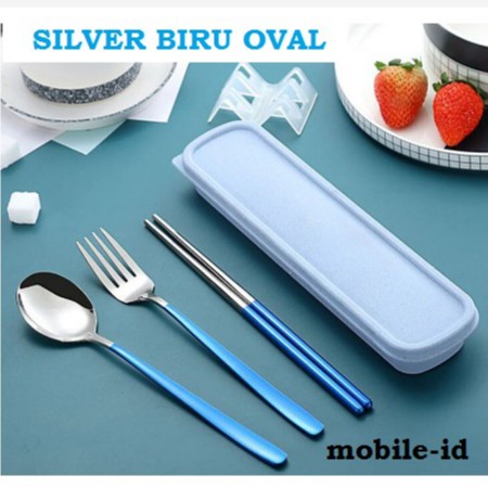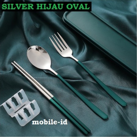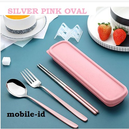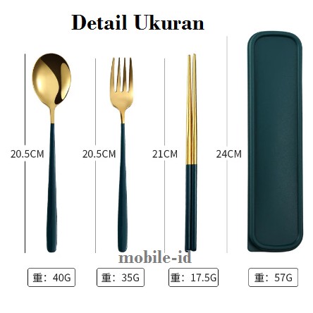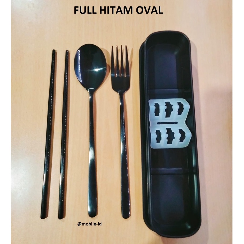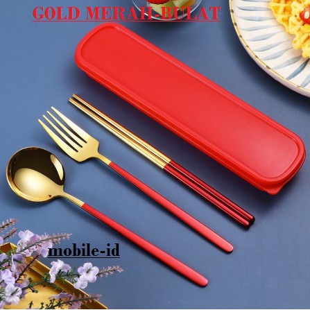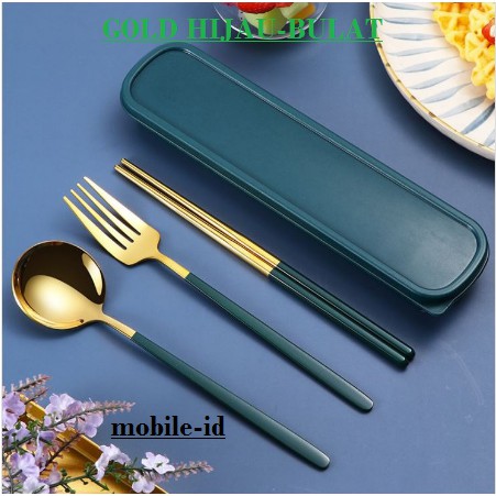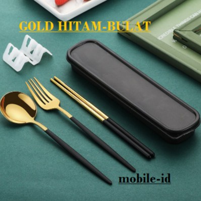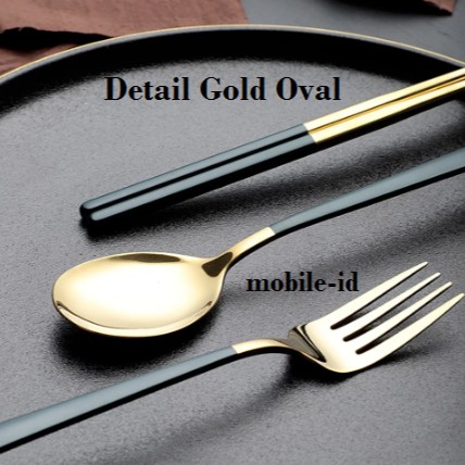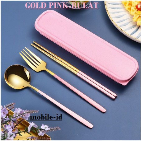 Set Alat Makan Korea Stainless Steel 410 Cutlery Set Box Sendok Garpu Sumpit Gold Oval 4 in 1 Portable
