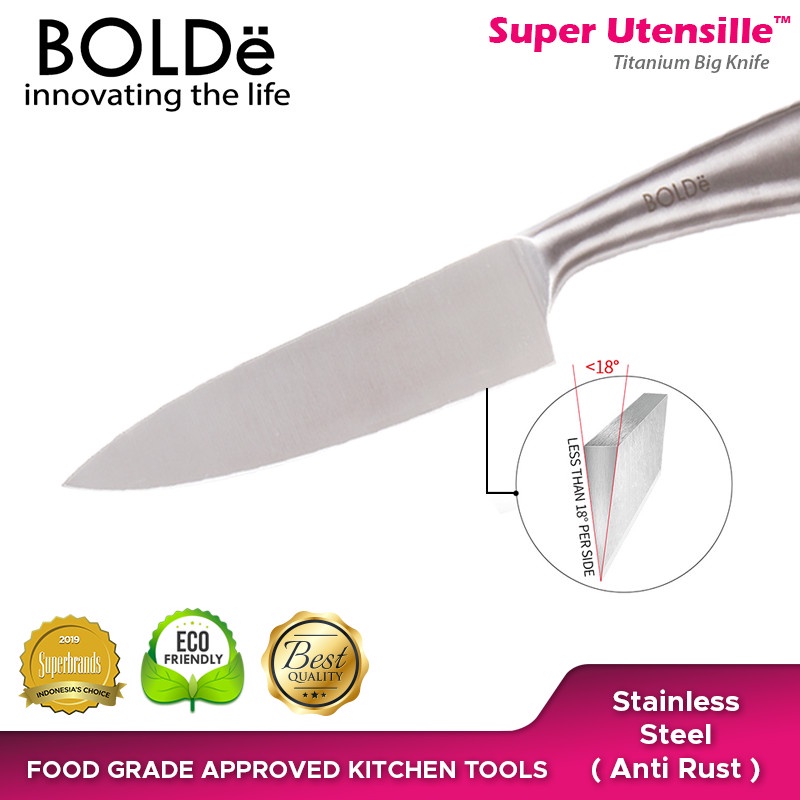 BOLDe Super Utensil Titanium Big Cooking Knife - Pisau Dapur - Pisau Masak Stainless Anti Karat - Pisau Buah Serbaguna
