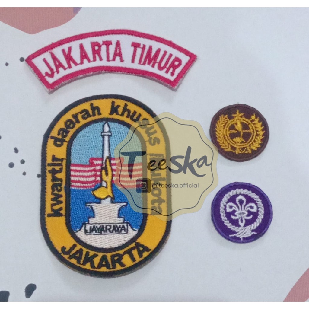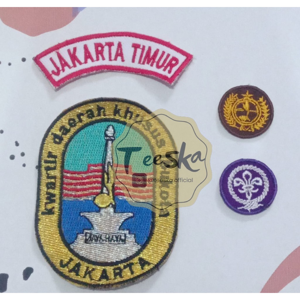 Set Atribut Seragam Pramuka Logo Tunas Kelapa dan Wosm, Logo Kwartir Daerah ( Kwarda ) DKI Jakarta Lokasi Kwartir Cabang ( Kwarcab ) Jakarta Timur