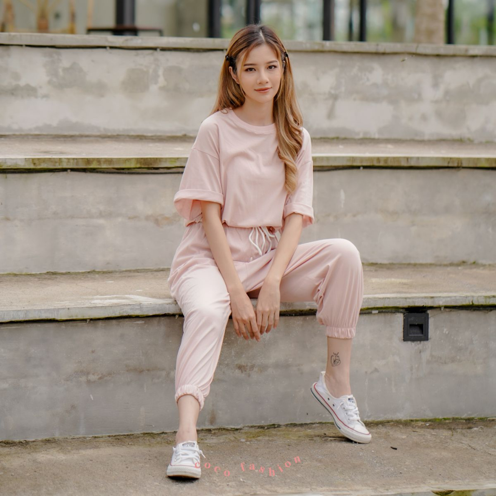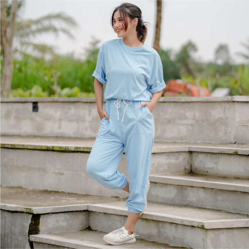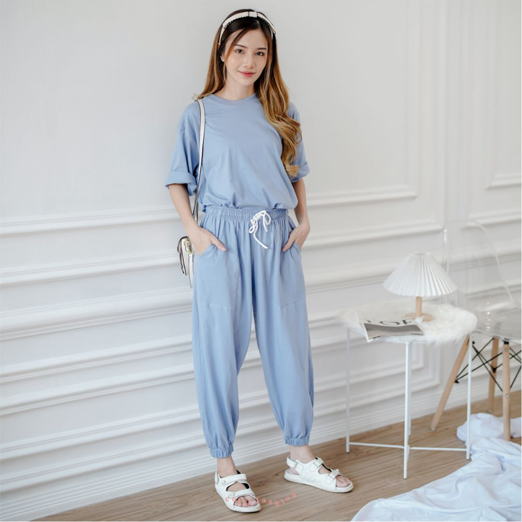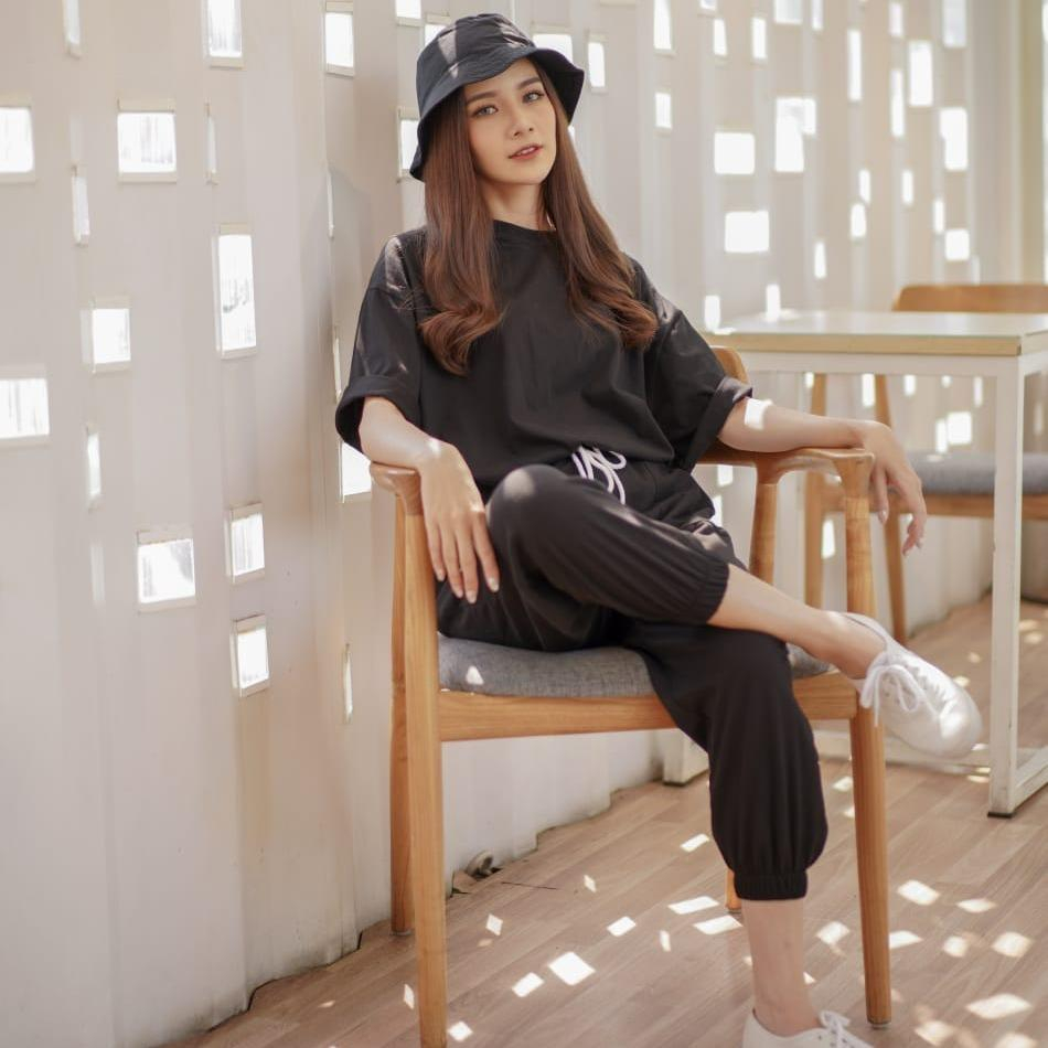 Set Baju Wanita Kekinian Jogger Lengan Pendek Premium Cotton Jisoo