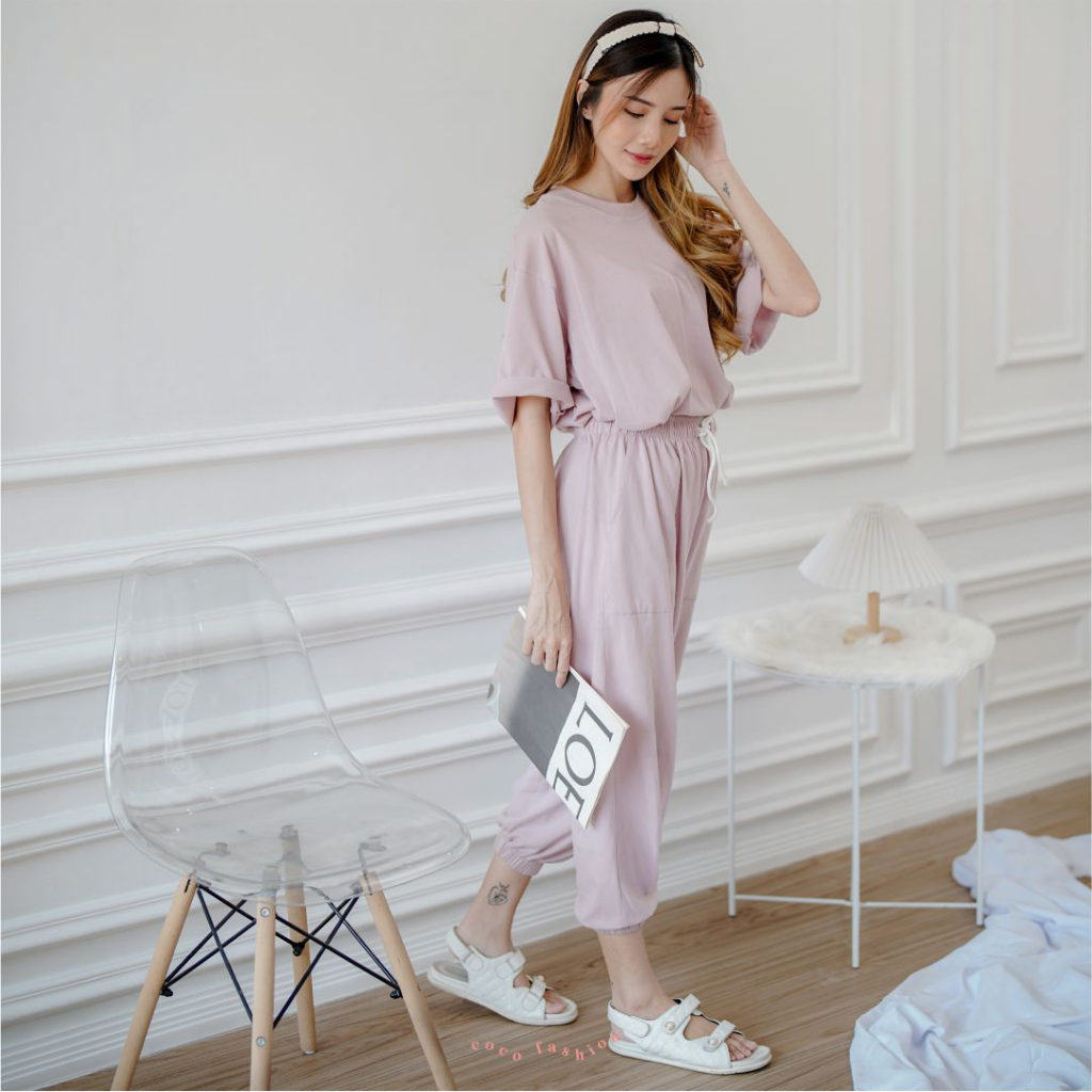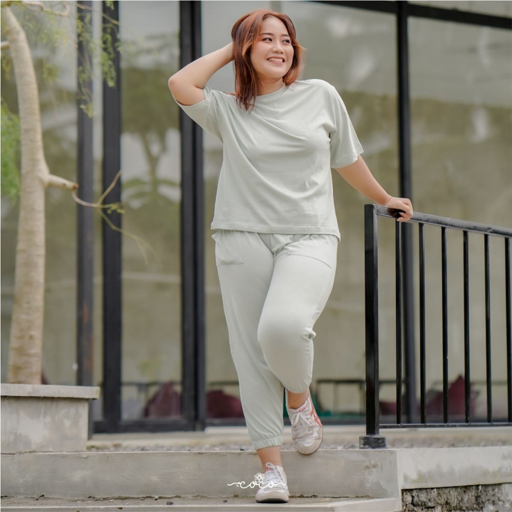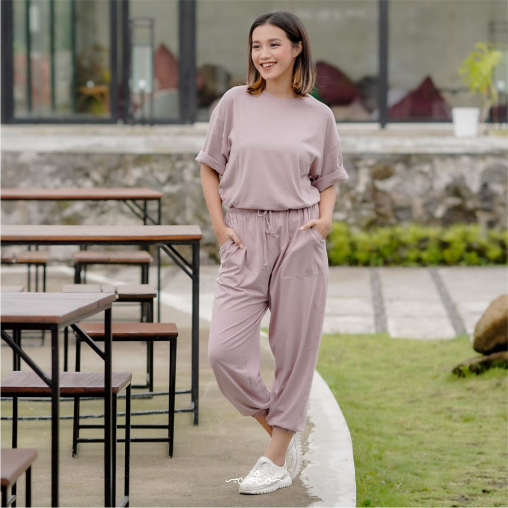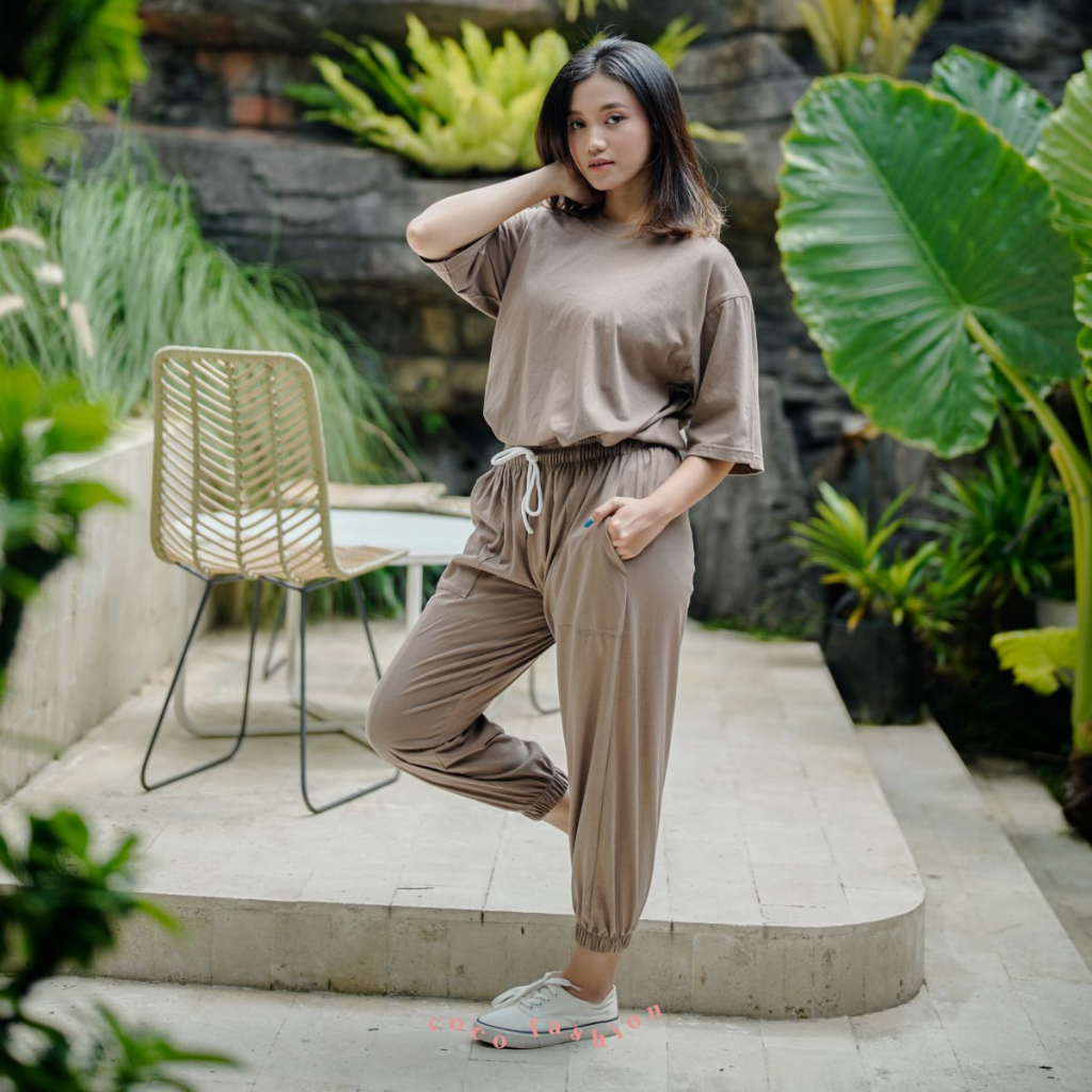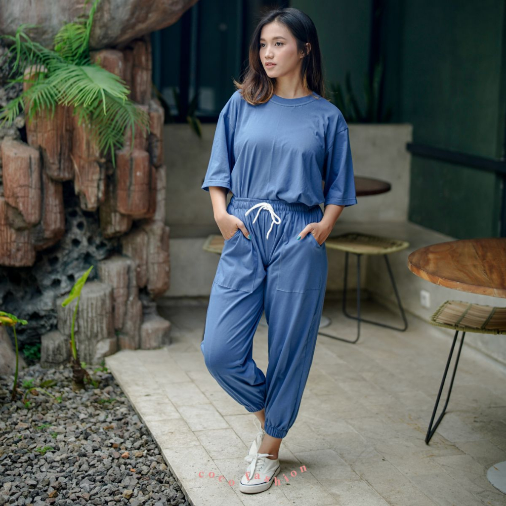 Set Baju Wanita Kekinian Jogger Lengan Pendek Premium Cotton Jisoo