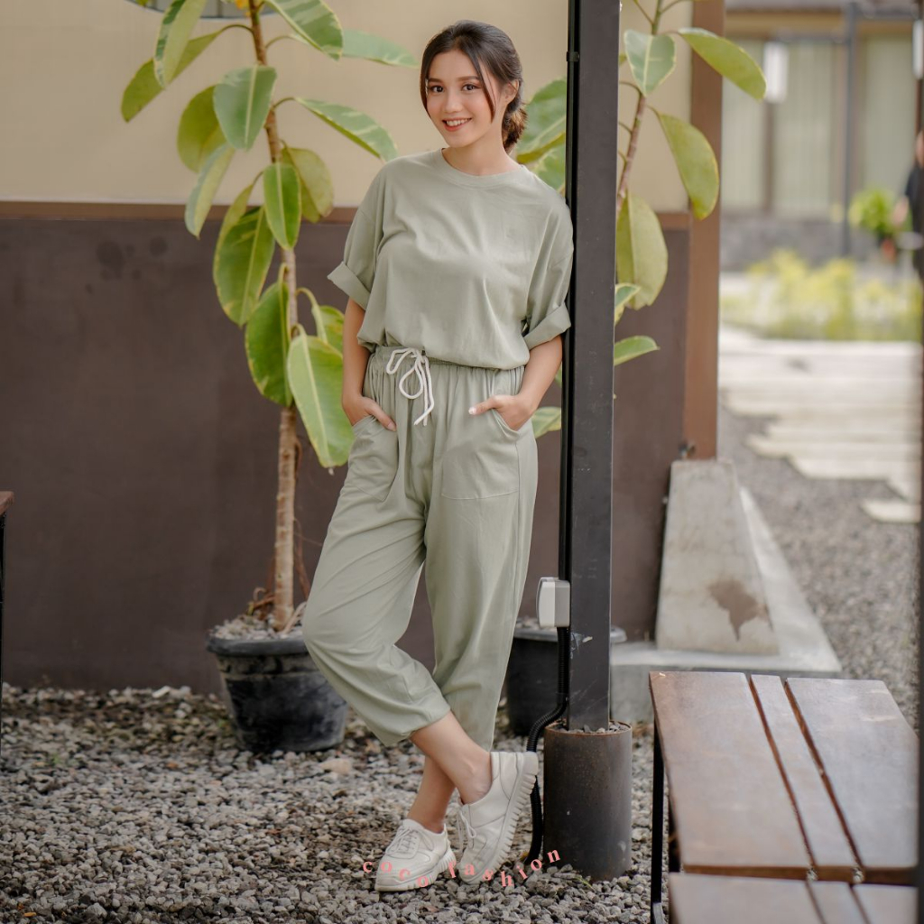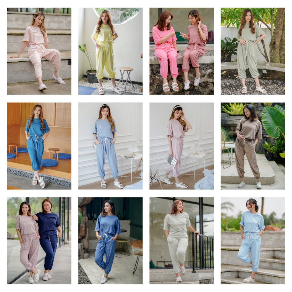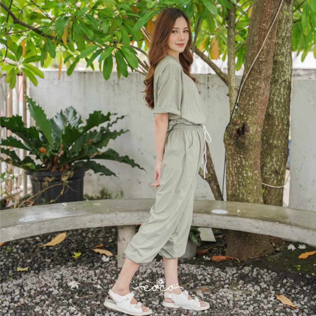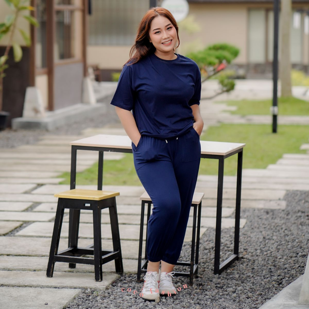 Set Baju Wanita Kekinian Jogger Lengan Pendek Premium Cotton Jisoo
