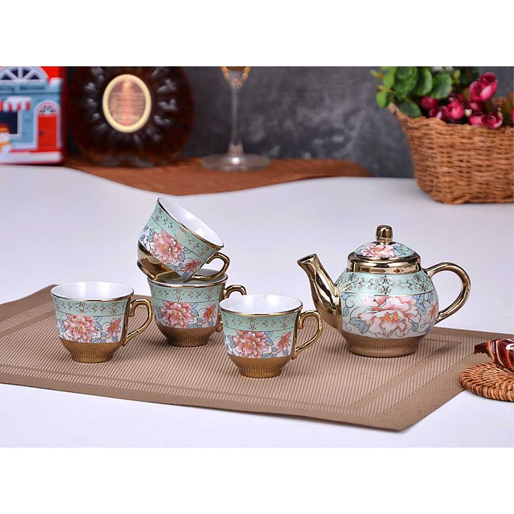 Set Cangkir Teko Teapot Piring Set 5 IN 1 / Teko Set Premium Europe Classic Style / Parcel Kado Teko Cangkir Teh Keramik