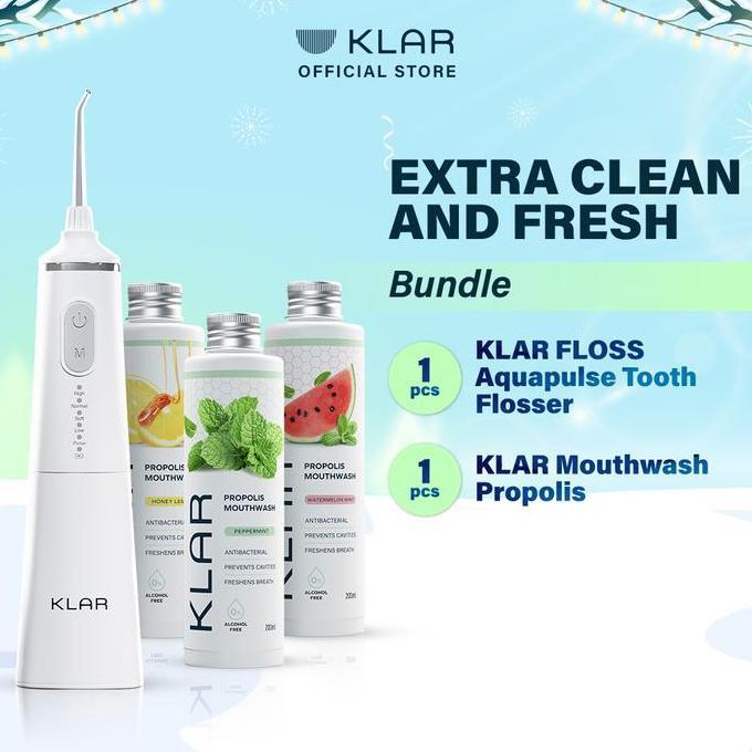 kanaboydagang- klar extra clean fresh bundle - tooth flosser aquapulse mouthwash propolis | paket lengkap kebersihan gigi dan nafas segar - cocok untuk pengguna behel atau kawat gigi