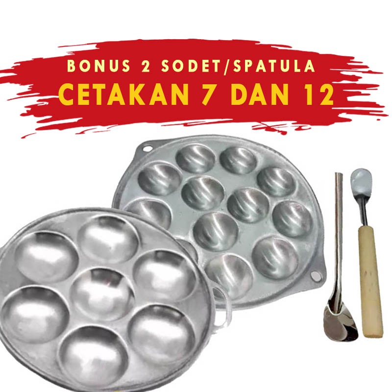 Set Cetakan Bulat dan Spatula Kecil | Wajan Cetakan Martabak Telur / Telor Bulat Cilor Wajan Bundar isi 7 dan 12 Lubang | Cetakan Bulat Kue Cubit Dorayaki Takoyaki Maklor Martabak anak SD