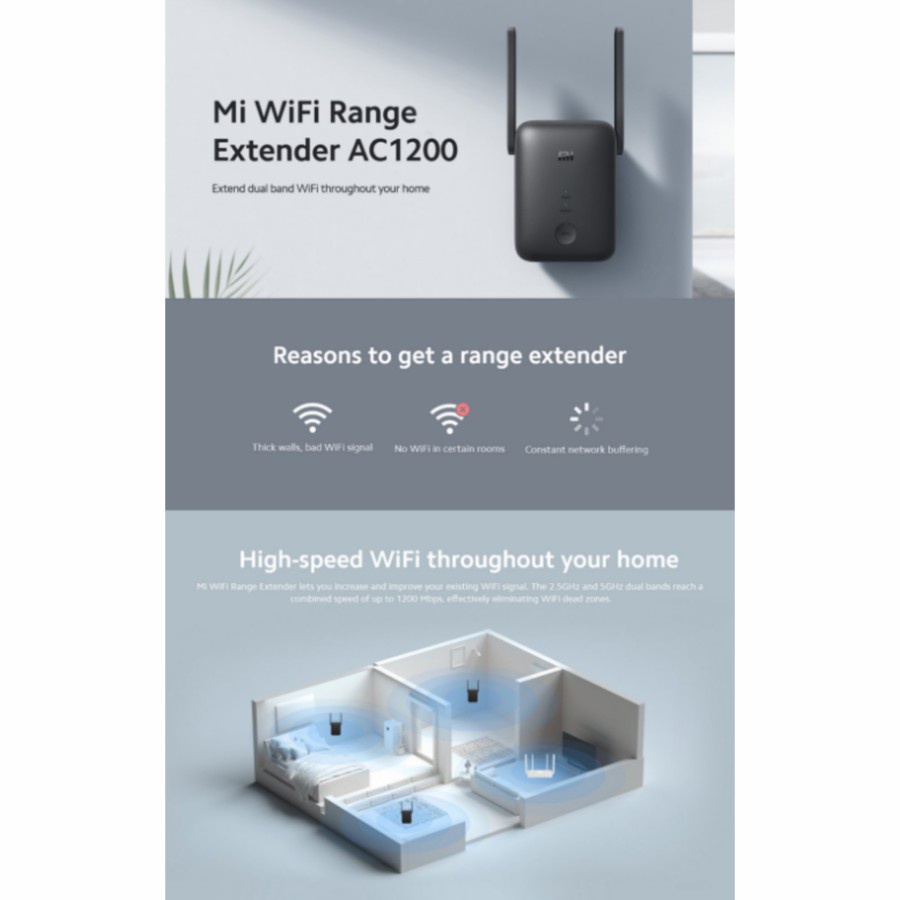 Mi WiFi Range Extender AC1200 Penguat Signal WiFi 1200 Mbps