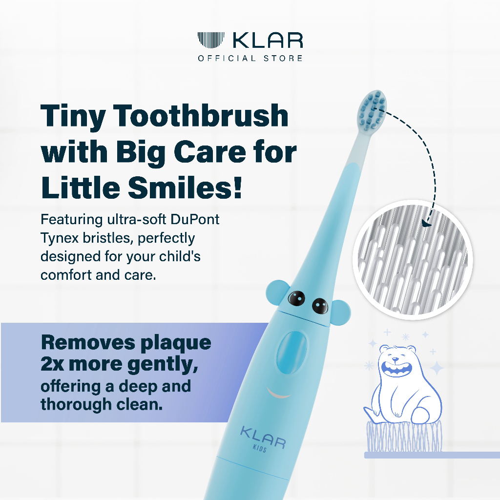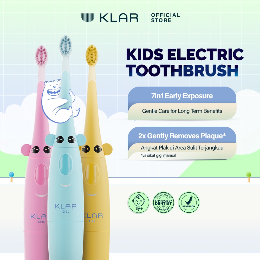 KLAR Kids Electric Toothbrush - Sikat Gigi Elektrik Anak untuk Usia 3-12 Tahun