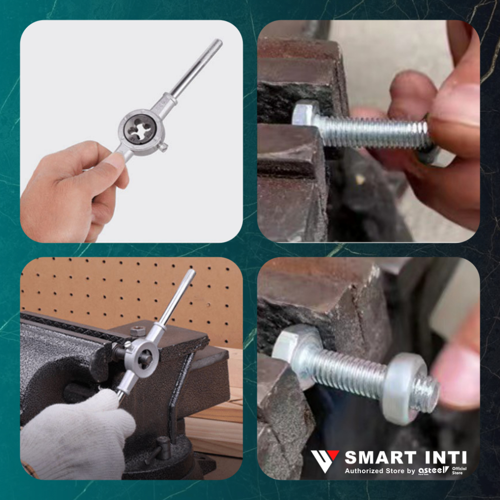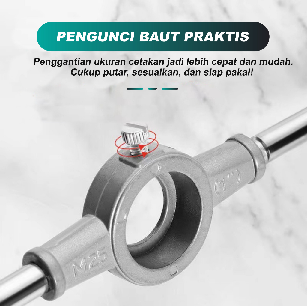 Die Set Alat Metrik Pembuat Senai Drat Kasar Metric Hand Die Set M5 - M12 Adjustable 6 PCS Asteel