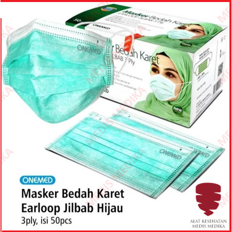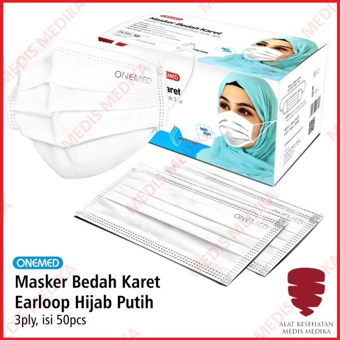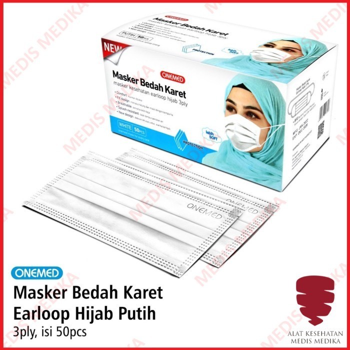 Masker Warna Isi 50 Onemed 3ply Headloop Face Mask Disposable Bedah Karet Hijab Debu Motor Medis