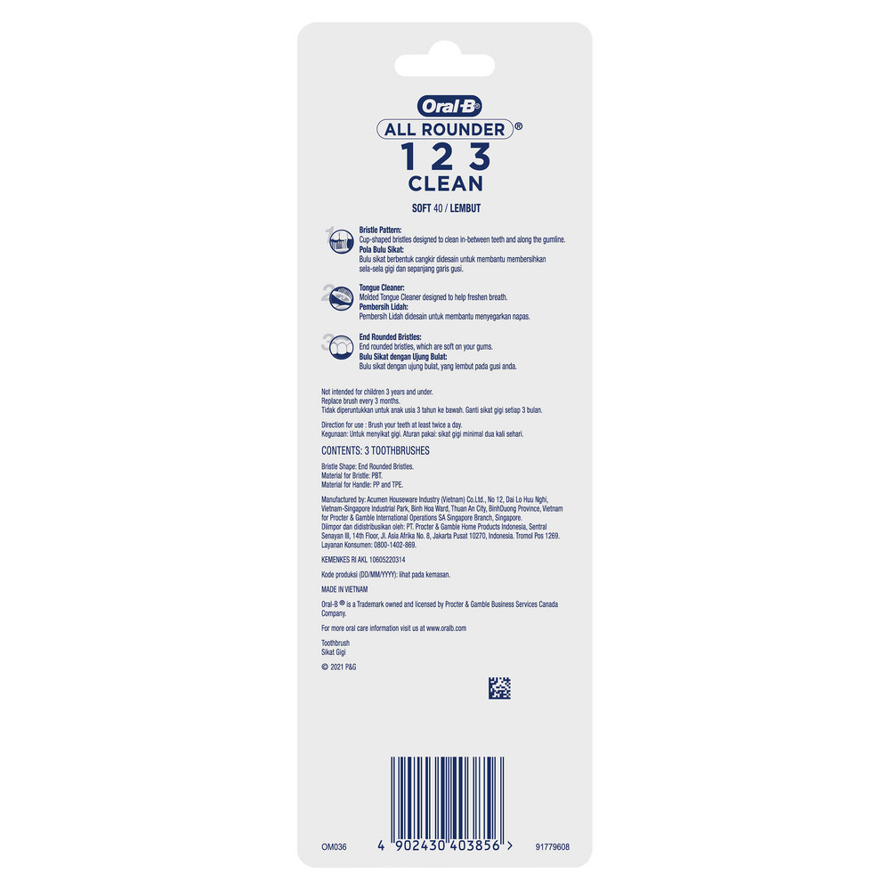 Oral-B Sikat Gigi All Rounder 123 Clean Soft 3s
