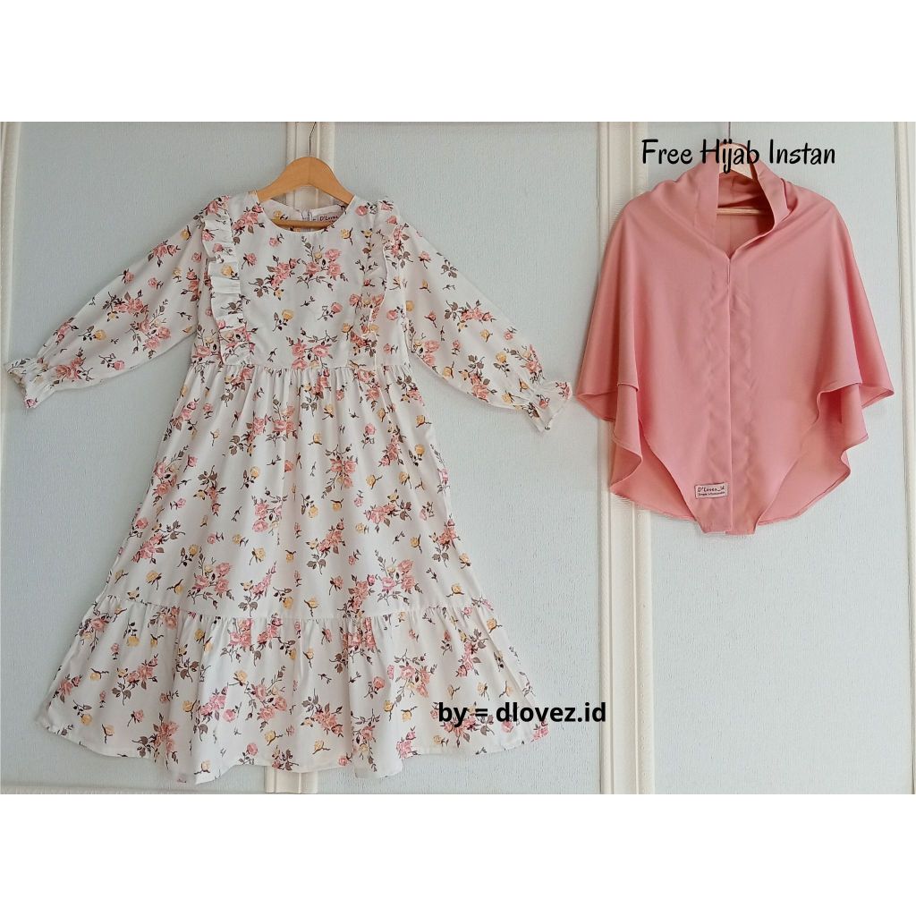 Set Gamis Anak 1 - 14 Tahun Free Hijab Instan / Set Gamis Kaira Motif Baru
