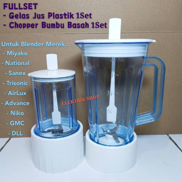 Set Gelas Jus Miyako Plastik + Chopper Bumbu Basah 1set Untuk Blender Merk Miyako National Sanex DLL