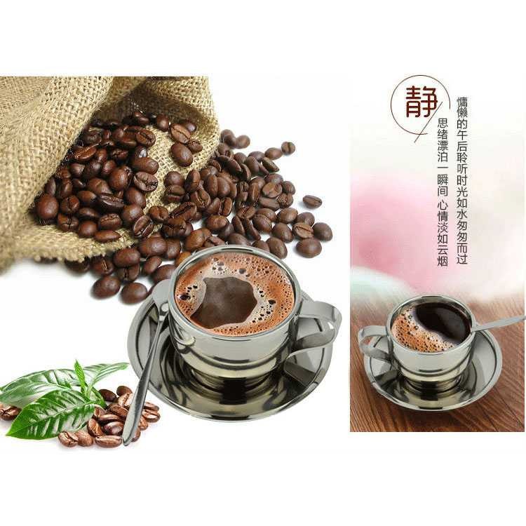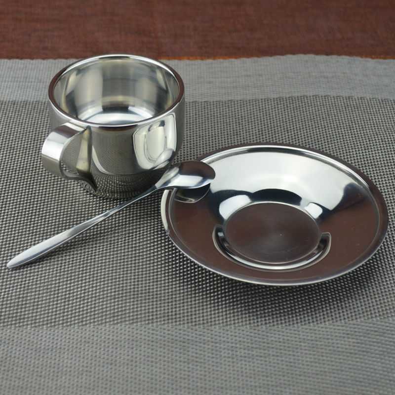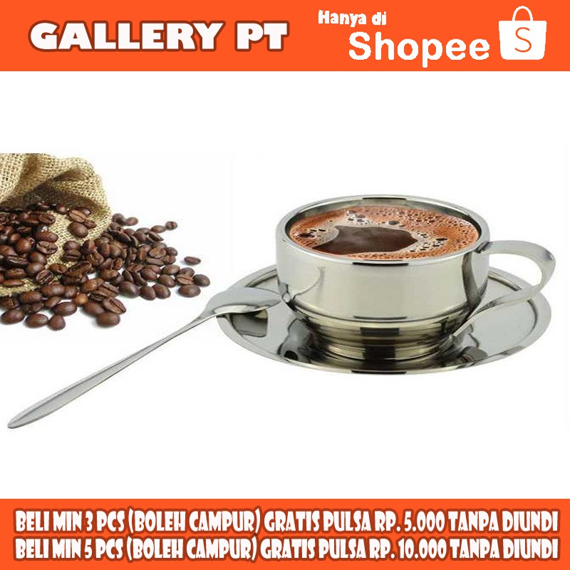 Set Gelas Sendok Piring Kopi Stainless Steel