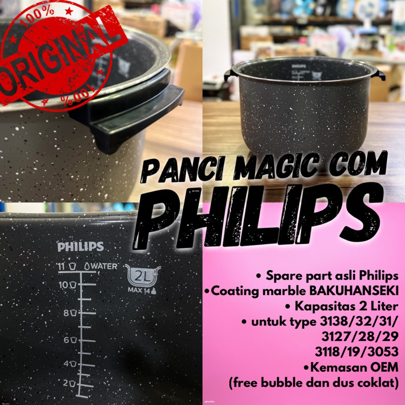 PHILIPS HD3110/33 Inner Pot 2L Bakuhanseki dan Ceramic Gold Panci for HD3132/ HD3129/ HD3119 / HD3138 /HD 3138 Panci/Inner pot Rice Cooker 2L HD3118/3128/3127/3129/3119/3132 Panci Rice Cooker Philips