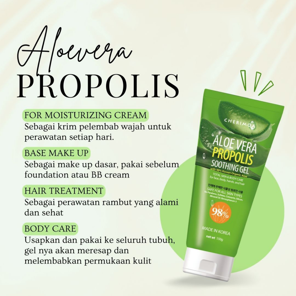 BPOM ALOEVERA PROPOLIS 98% Korean Organic Aloe Soothing Gel - 150gr Cherimoa