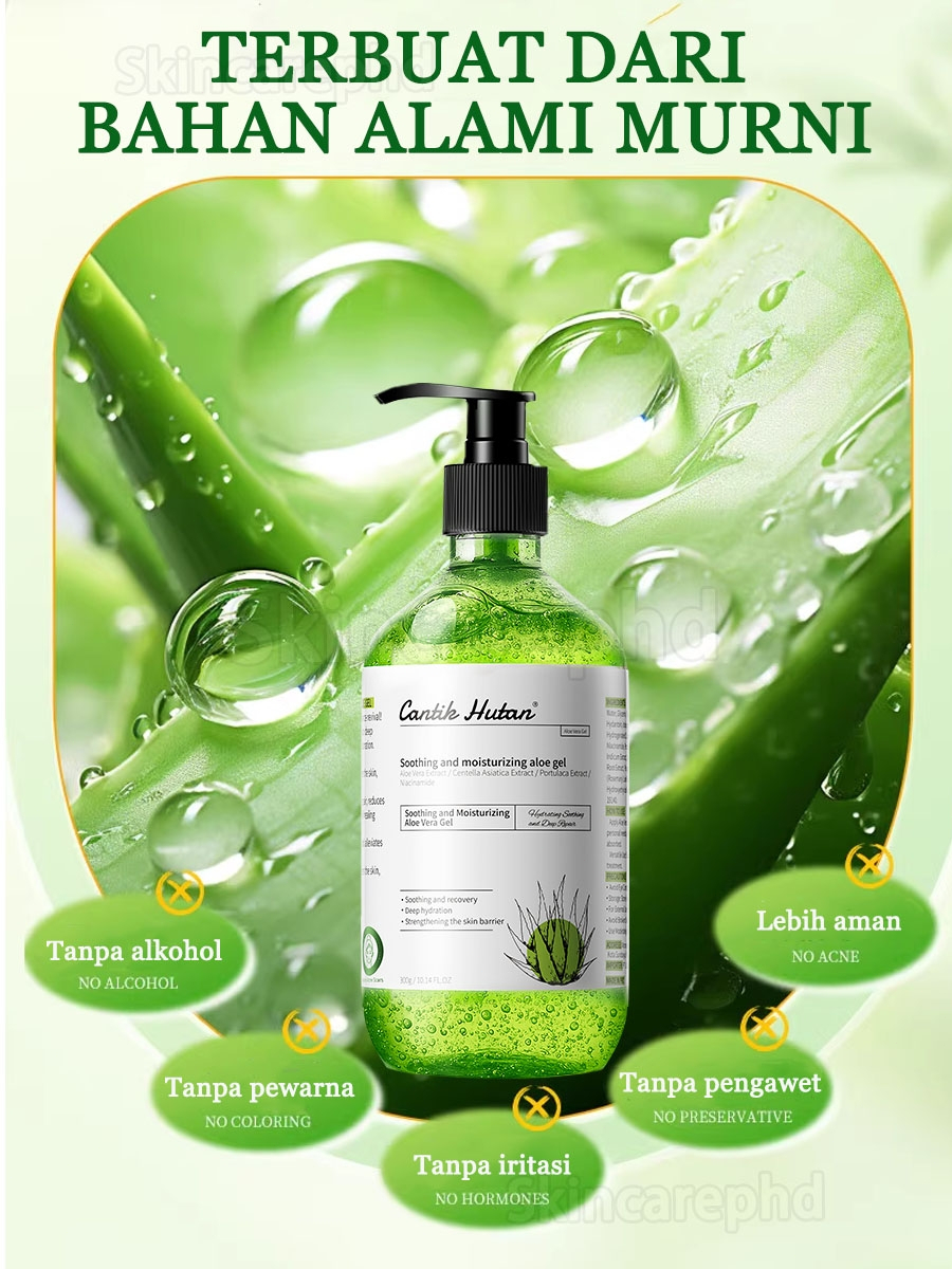 Cantik Hutan Gel Aloe Vera 300ml Memperbaiki Kulit Setelah Terpapar Matahari Melembapkan Menenangkan Kulit BPOM
