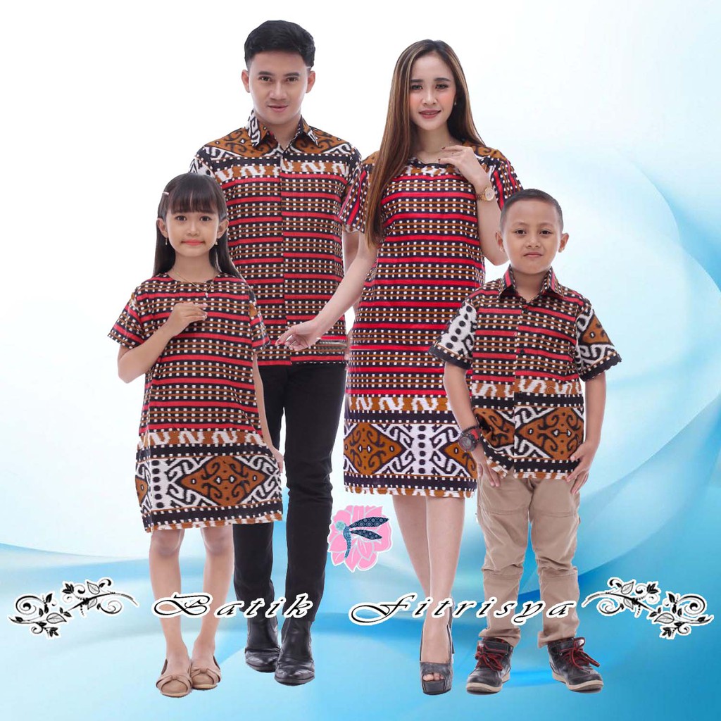 Set Keluarga Natal - PAKAIAN KELUARGA IBU BAPAK ANAK - KEMEJA DRESS BATIK TENUN SONGKET MACAN MERAH - MURAH TERLARIS
