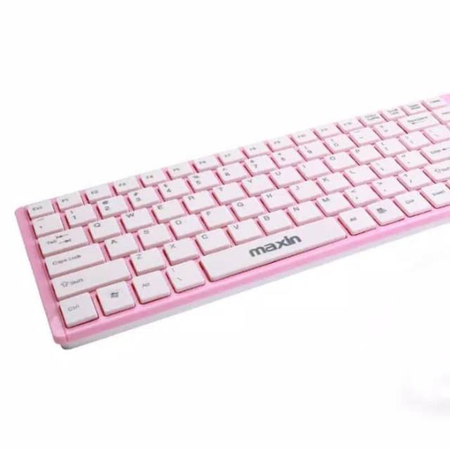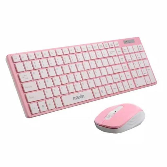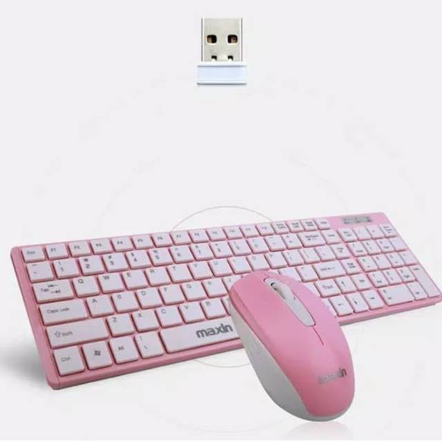 Set Keyboard + Mouse Wireless Warna Pink Untuk PC/Labtop/Notebook